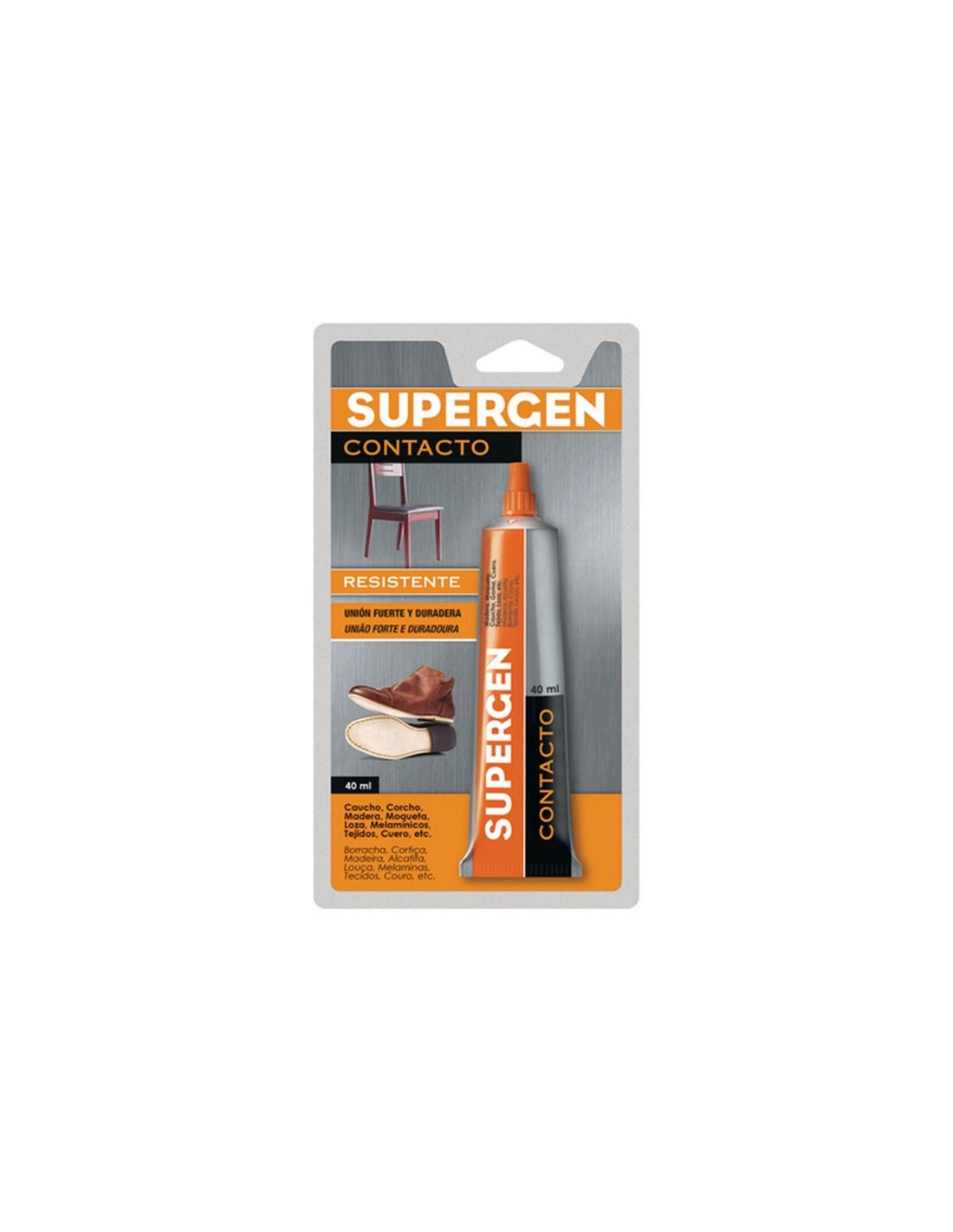 Adhesivo contacto TESA Supergen. Pega con la máxima resistencia sin perder flexibilidad. Para madera y derivados, contrachapado, aglomerados, corcho, cuero, piel, moquetas, tejidos, papel, caucho, goma, vidrio, etc. Tubo 40 ml.
