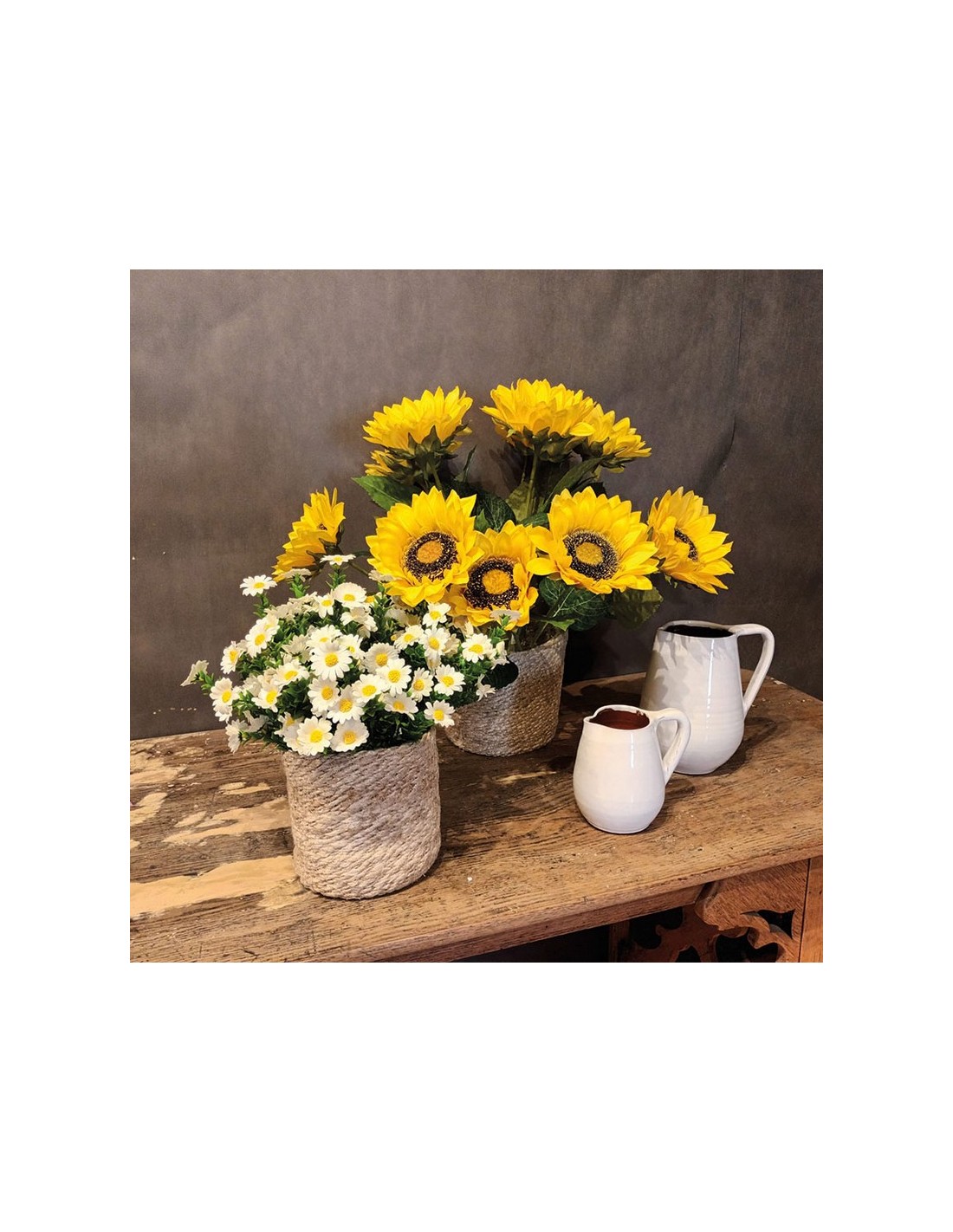 Flor artificial para decoración Ramos y varas imitación realista de diferentes plantas para decoración. Fabricadas en tela y pp. Vara girasol amarillo.