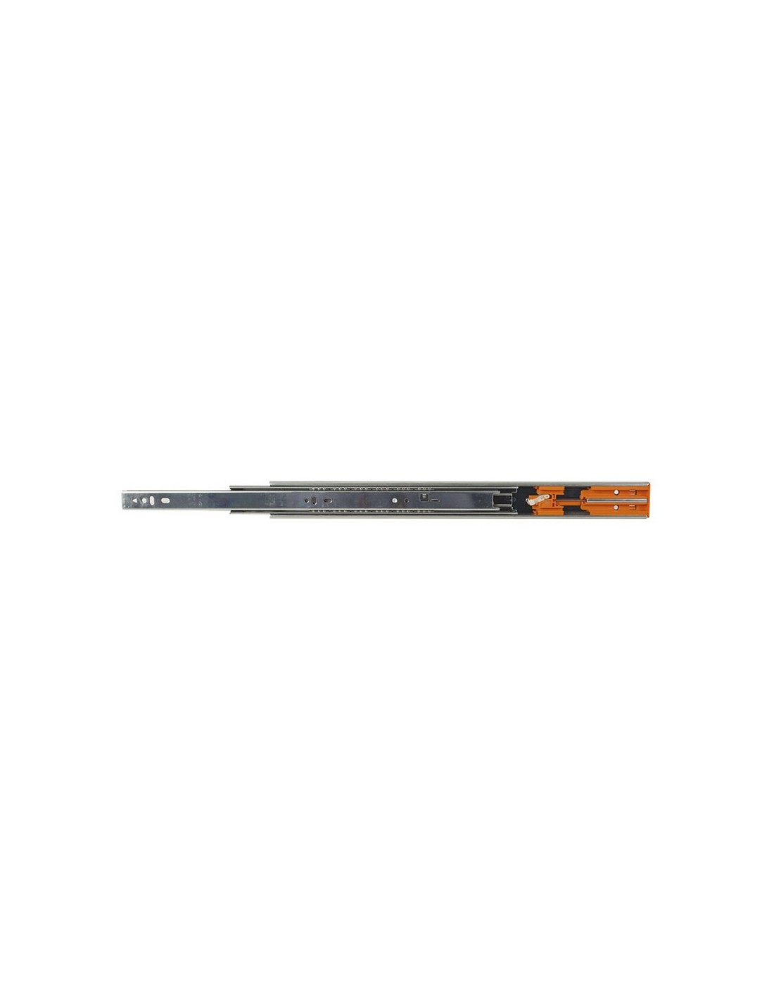 Guía metálica con amortiguador para cajones EUROLATON. Cincada. Juego 2 unidades. Con rodamientos. Extensión total. Peso máximo 35 kg. 500 mm.