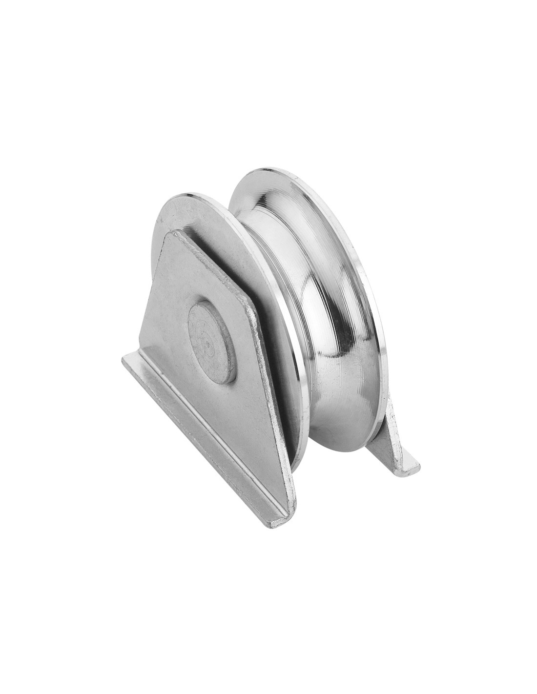Polea acero ESTEBRO con canal ø 80 mm. Canal 20 mm. Con soporte.