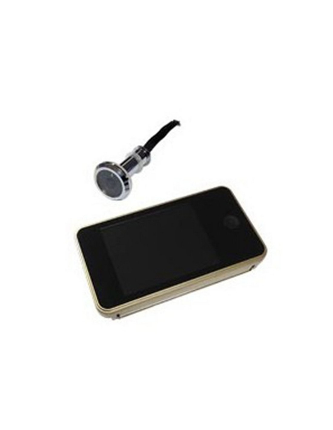 Mirilla digital universal MICEL MD01 Acero acabado dorado. Pantalla 3,2 pulgadas. Válida para grosores de puerta de 42 a 72. mm. Ángulo de visión 160 º. 3 pilas AAA (no incluidas). 1,3 Megapíxeles. 115x18xh.62 mm.