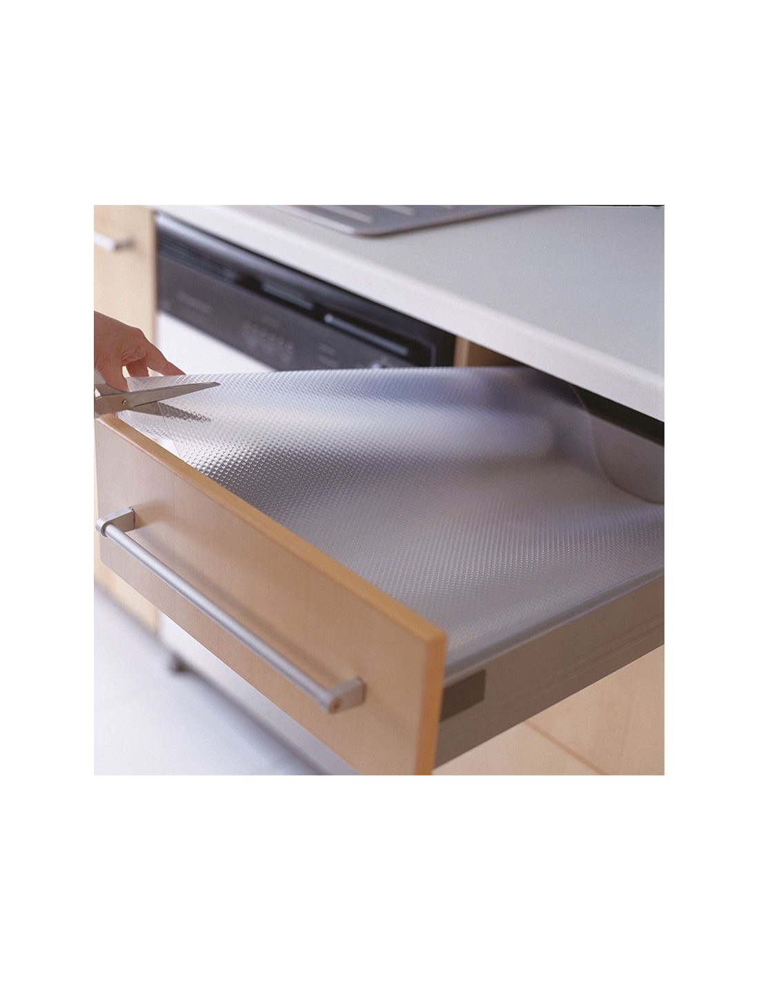 Lámina plástico antideslizante. Multiuso, se adapta a todas las superficies. Usos: interior cajones, fregadero cocina, estanterías, etc. Colores surtidos. 50x150 cm.
