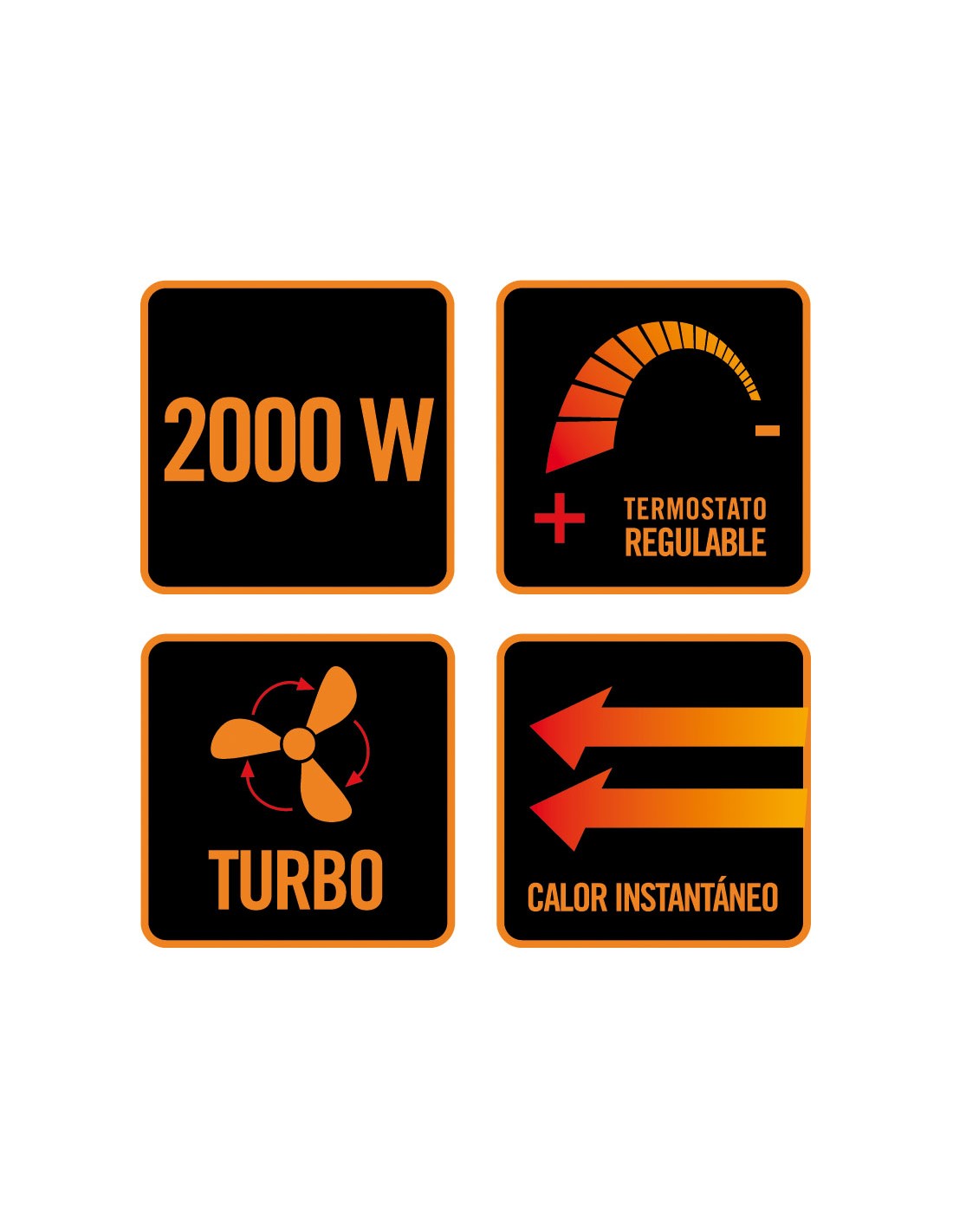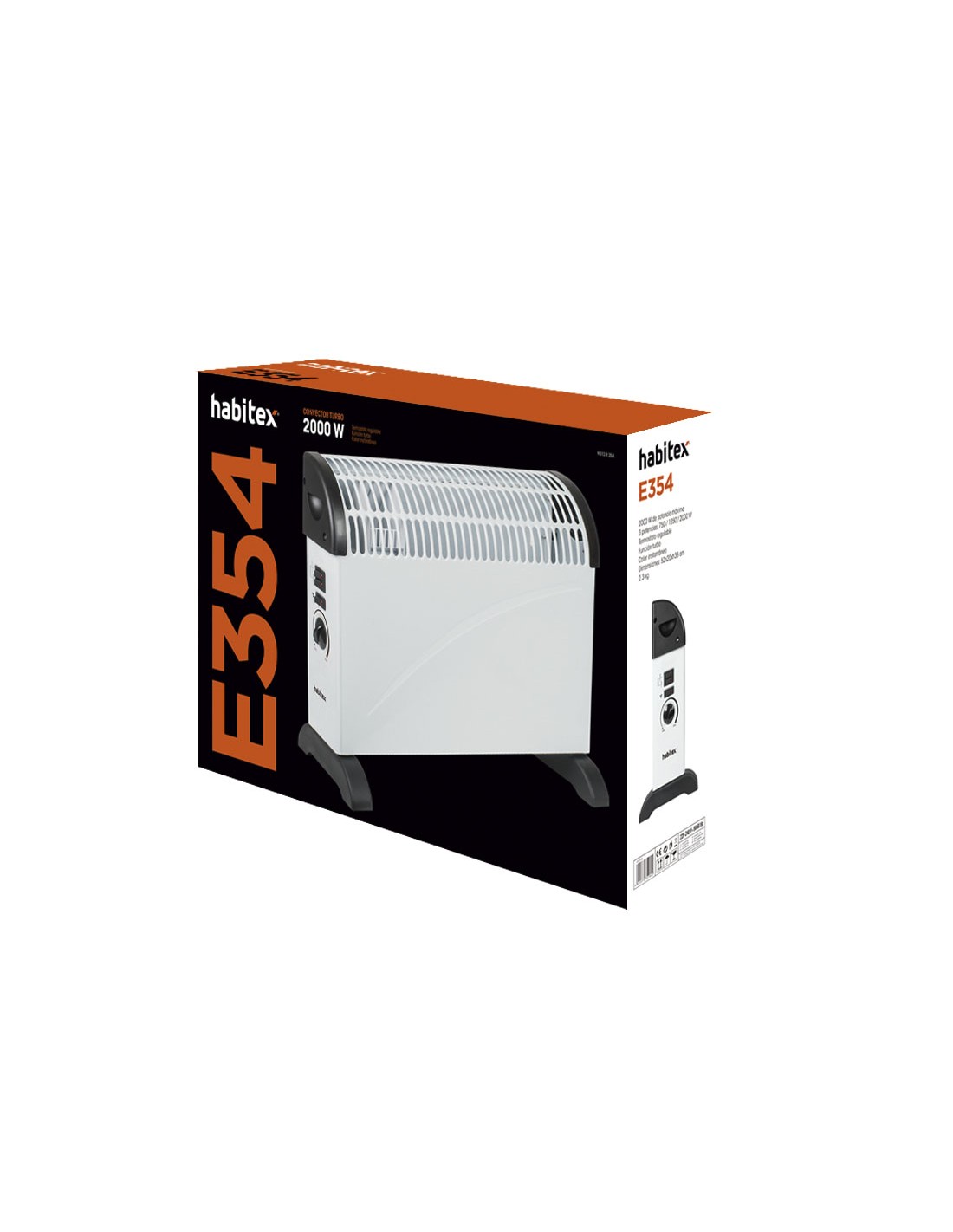 Convector turbo HABITEX E354. Termostato regulable. Protección contra sobrecalentamiento. Asas para facilitar el desplazamiento. 3 potencias: 750/1.250/2.000 W.
