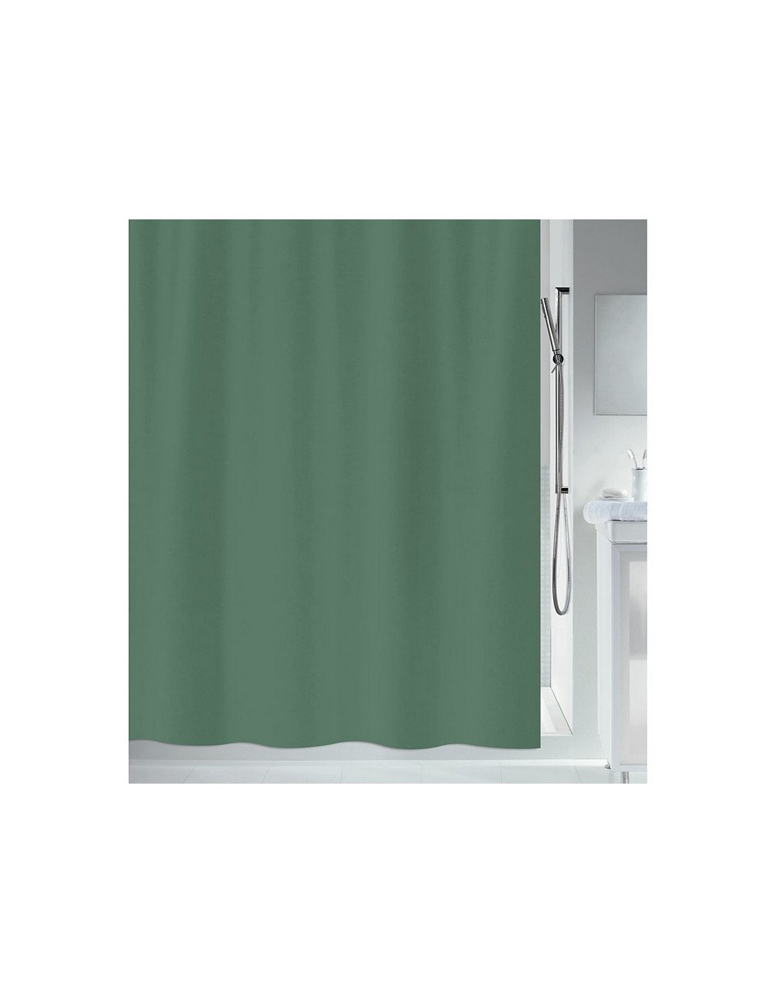 Cortina baño poliéster HABITEX 100% poliéster. 180xh.200 cm. Ojales reforzados. 12 anillas incluidas. Tela impermeable lavable máx 30º. Fabricado en España. City lisa verde oscuro.