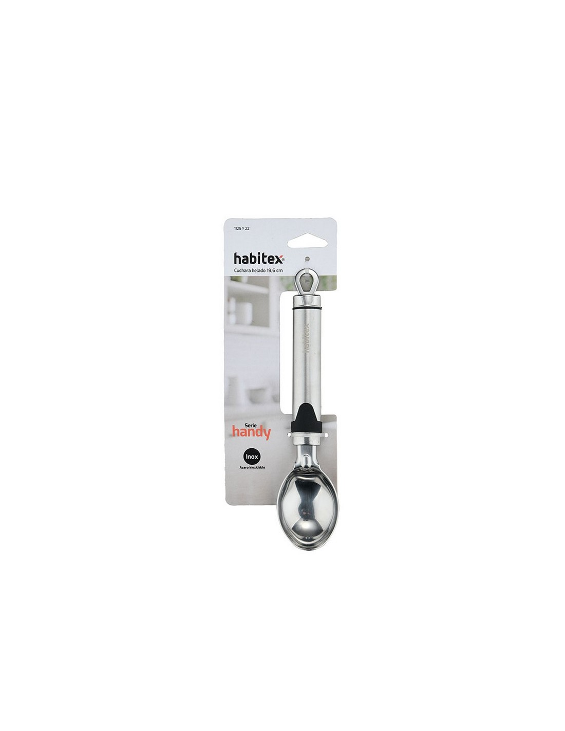 Cuchara helado HABITEX Handy Acero inox de alta resistencia. Mango ovalado con colgador. Aptos para lavavajillas. 19,6 cm.