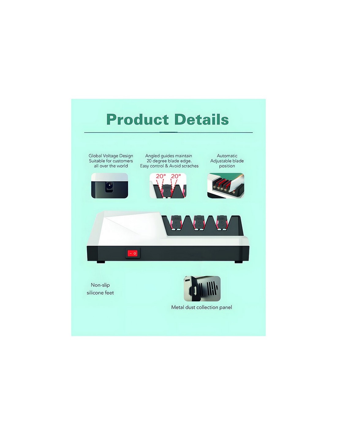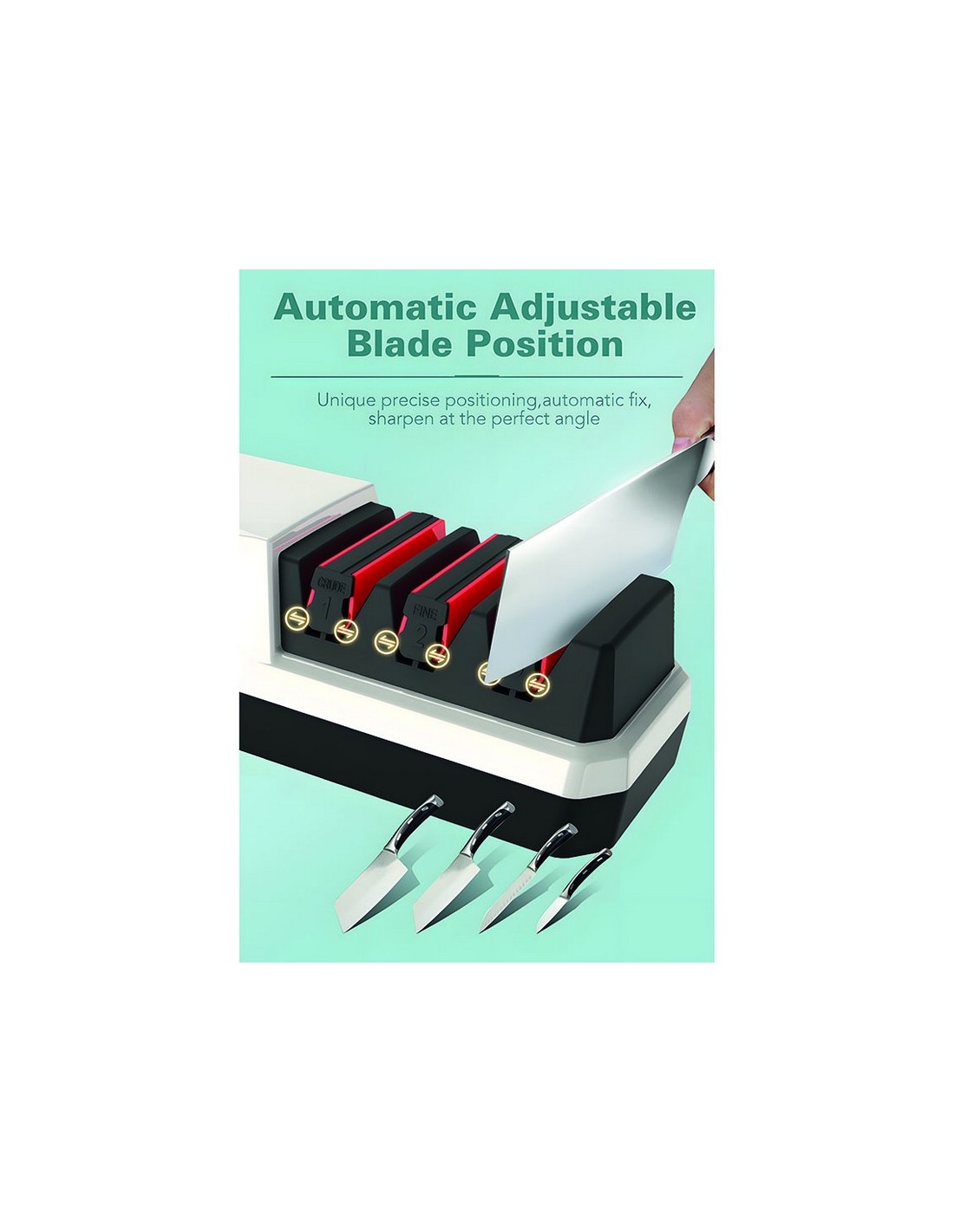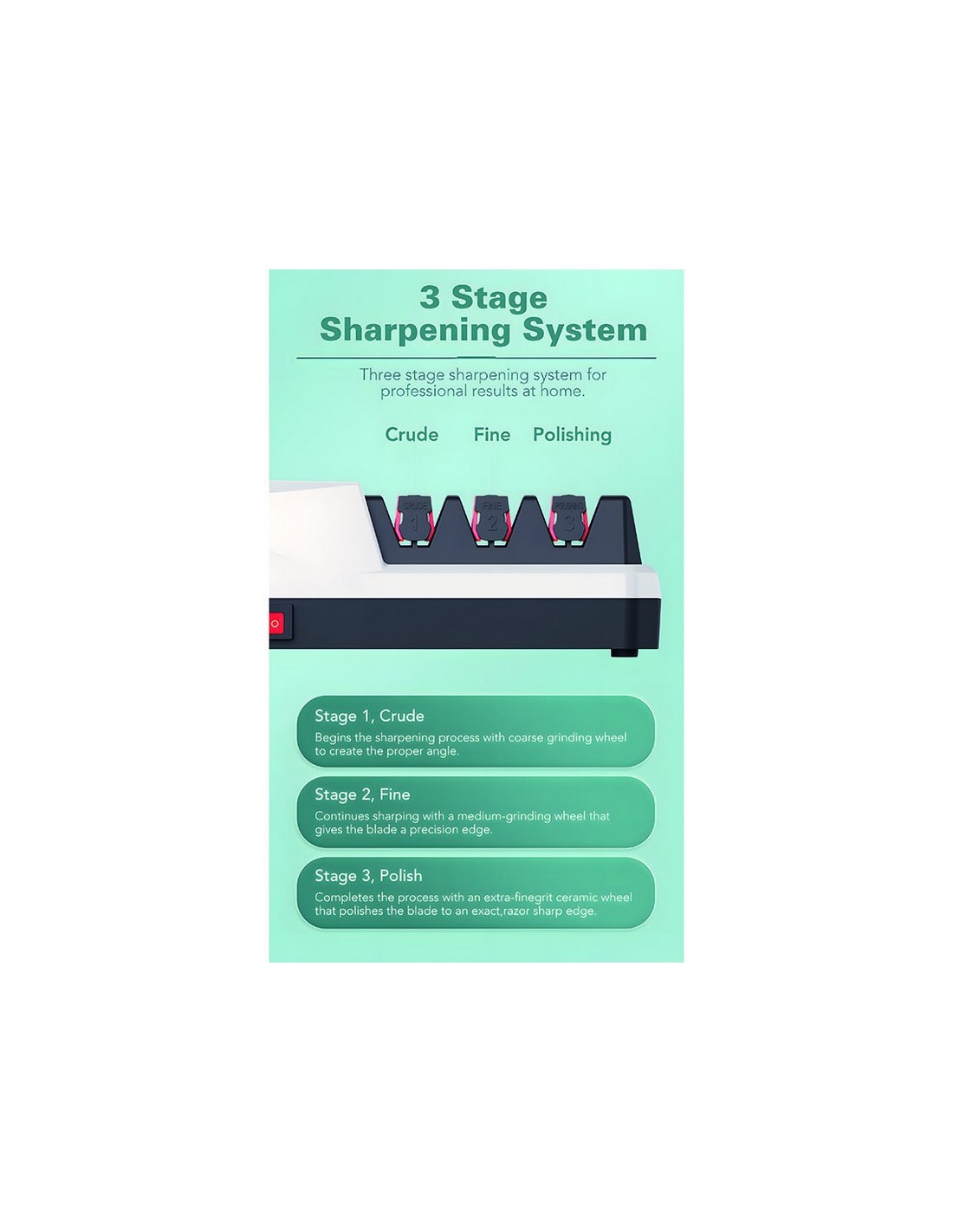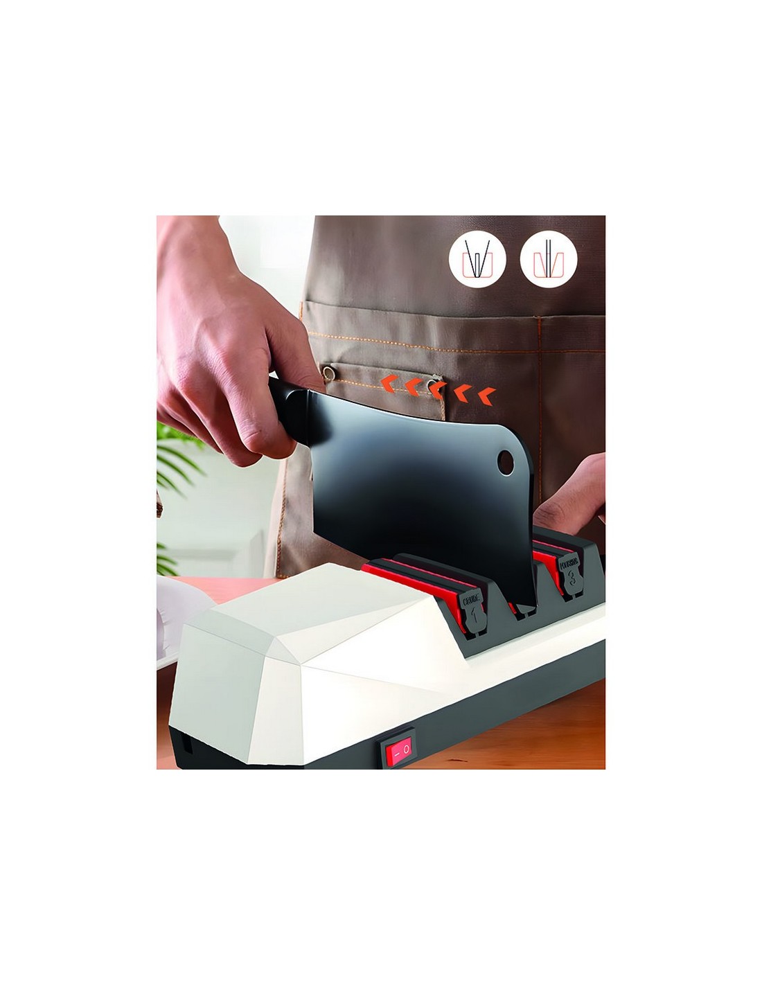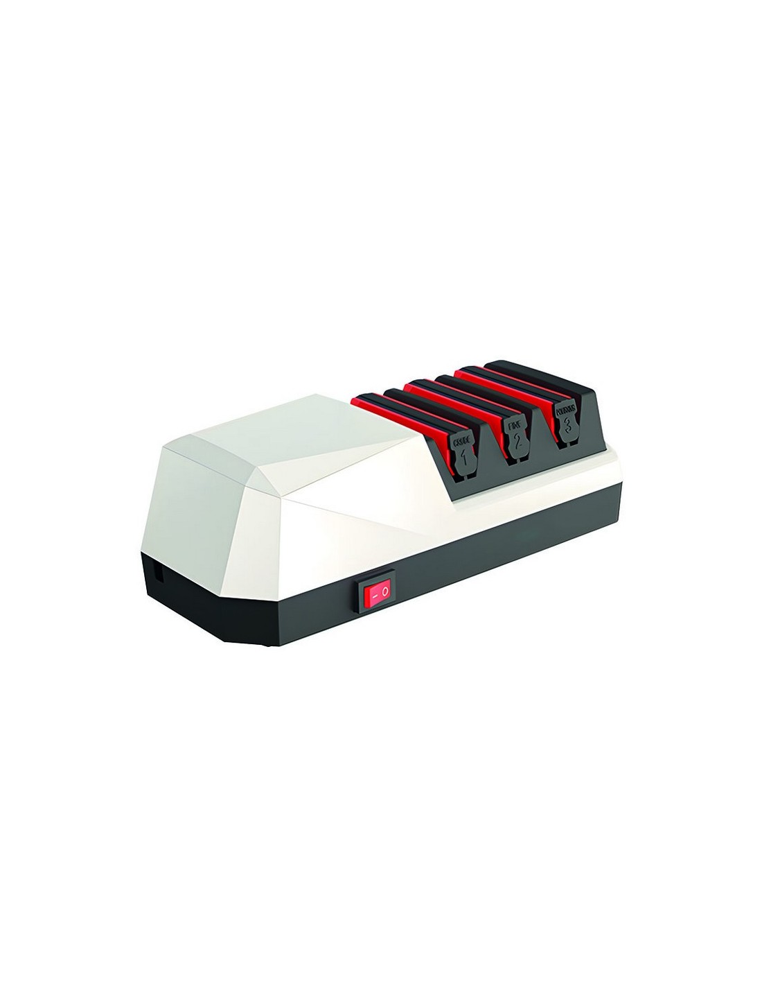 Afilador de cuchillos HABITEX RXD-003 3 fases de afilado: diamante (preparación del afilado); carburo de tugsteno (afilado grueso). y cerámica (afilado fino). Adaptador. 18 W.