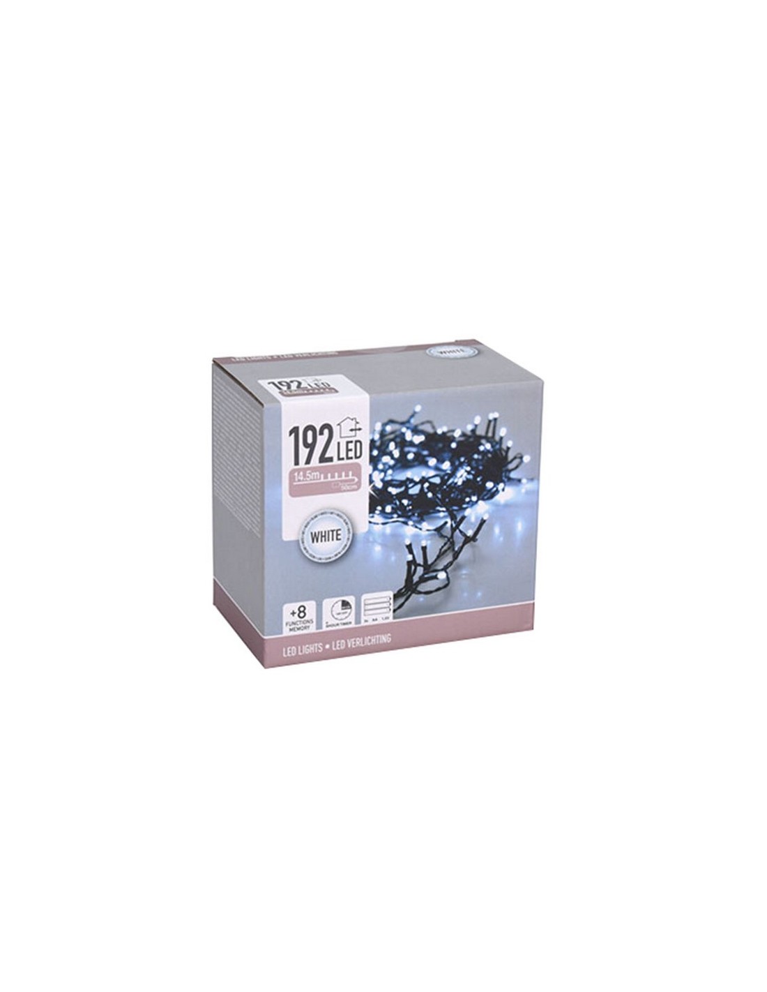 Guirnalda Led interior/exterior Interior/exterior. IP44. Funciona con 3 pilas AA (LR06) no incluidas. Temporizador. 8 funciones. . 192 lámparas. Blanco. 14,5 m.