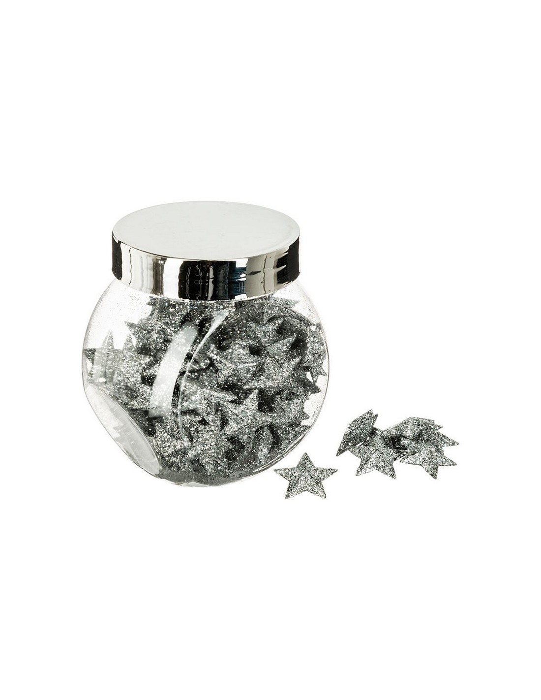 Confeti de estrellas brillantes Plástico. Bote 100 estrellas de 2 cm. Plateado.