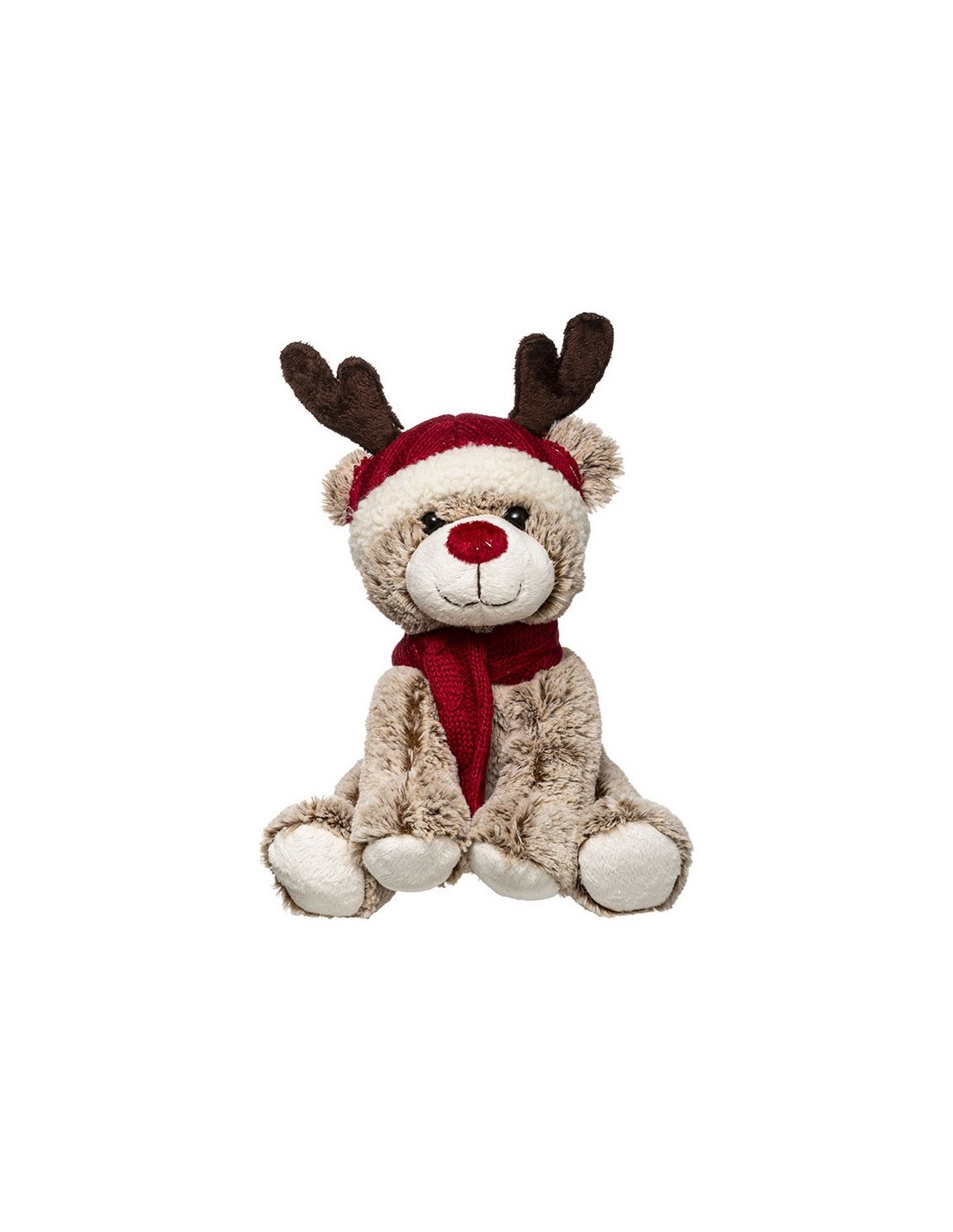 Oso decoración peluche 35 cm Poliéster. Oso marrón con bufanda y gorro de reno. 35 cm.