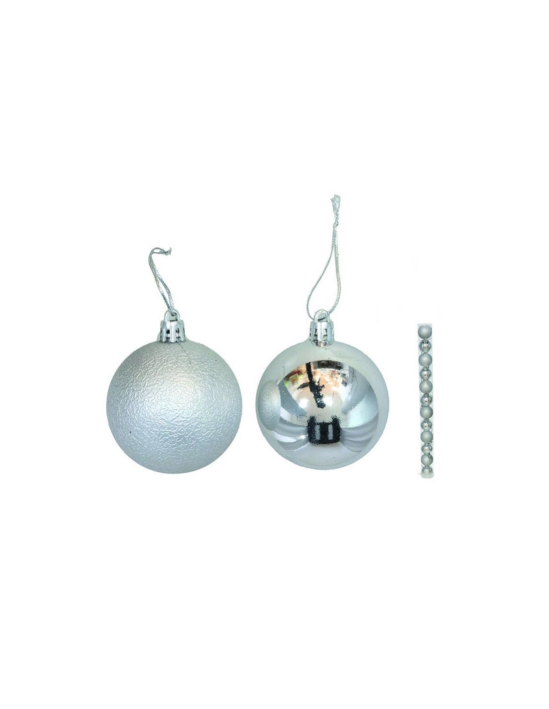 Tubo 12 bolas plateadas Surtido de 6 bolas color plata mate, y 6 bolas plata brillante. 6 cm.