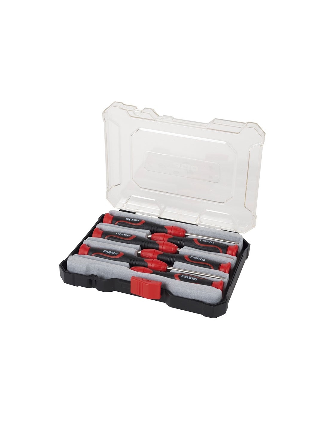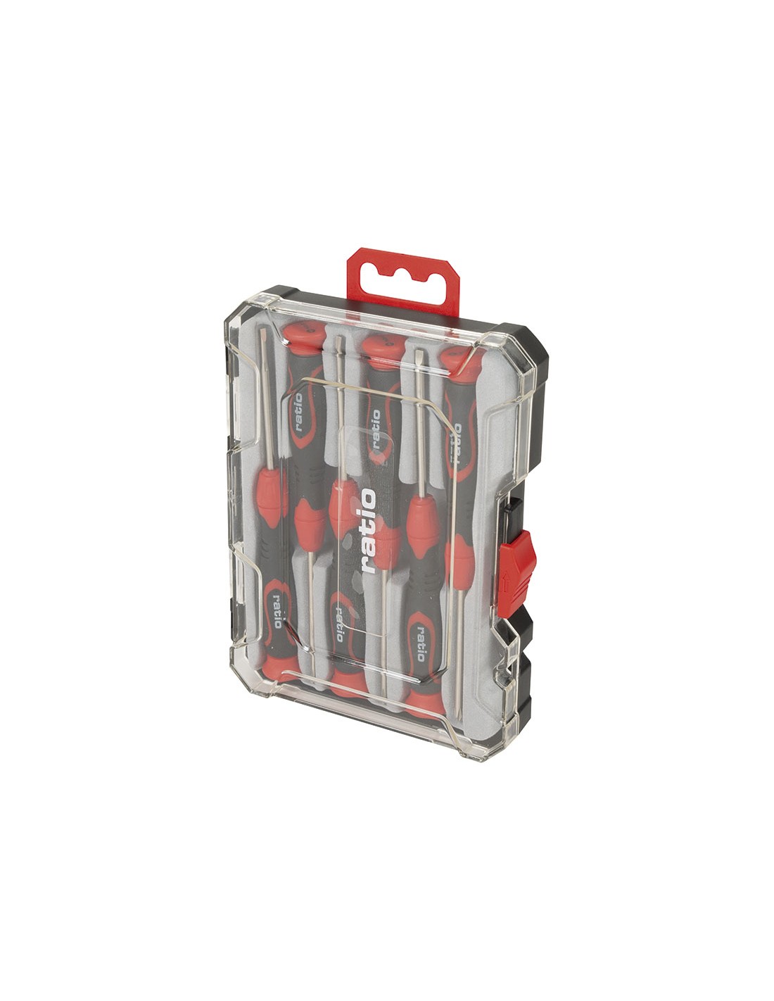 Destornillador precisión RATIO 6 en 1 Mango bimaterial antideslizante. Varillas acero cromo vanadio. Punta magnética. Composición: \r\nBoca plana: 2,0x50 mm, 2,5x50 mm, 3,0x50 mm.\r\nBoca Phillips:Nº0x50 mm, Nº00x50 mm, Nº000x50 mm.