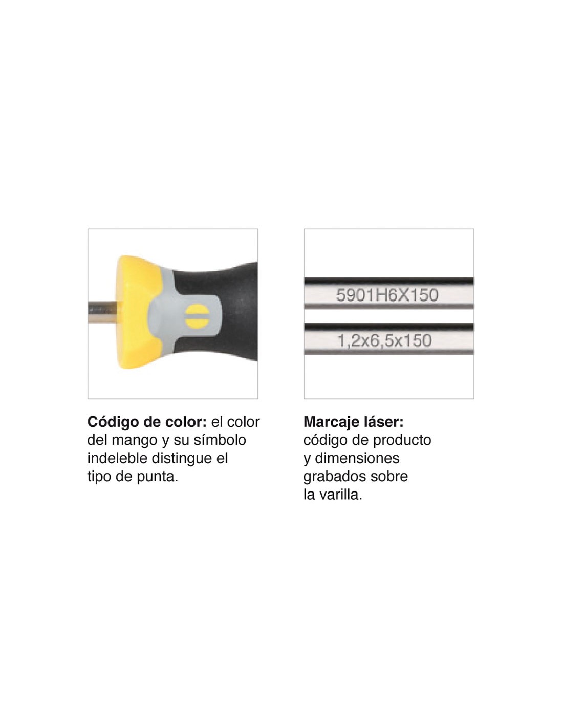 Destornillador RATIO serie Dinamyc Tecno Mango trimaterial antideslizante. Varillas acero molibdeno-vanadio 60 HRc con tratamiento térmico integral. Puntas pavonadas con mecanizado de alta precisión. Fabricación nacional según norma DIN. Plana 1,2x6,5x150 mm.