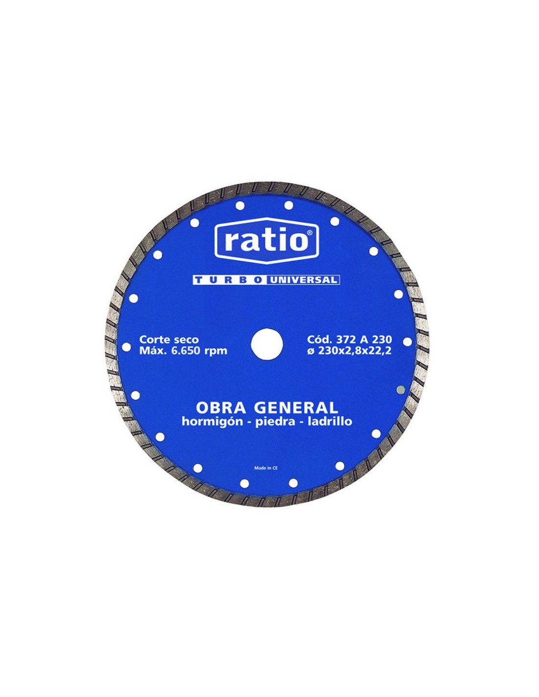 Disco diamante Turbo universal RATIO 372A Turbo. Obra general, hormigón, piedra, ladrillo. ø 230x2,8x22,2 mm.
