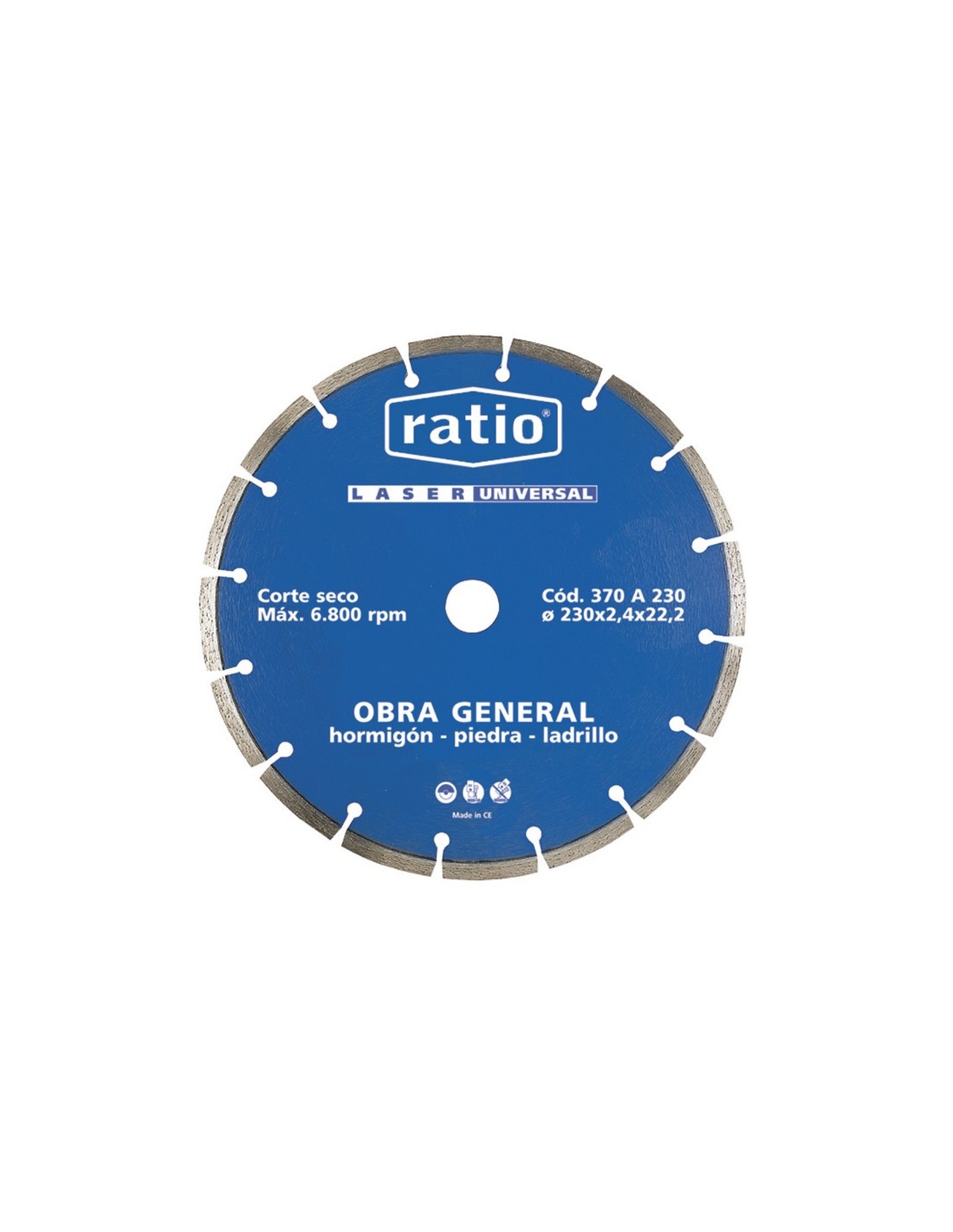 Disco diamante universal RATIO 370A Láser segmentado. Obra general, hormigón, piedra, ladrillo. ø 180x2,0x22,2 mm.