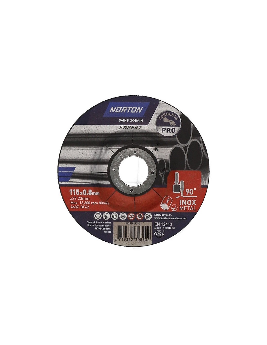 Disco corte inox/metal NORTON Expert Disco de corte ultrafino para acero e inox. ø 115x0,8 mm.