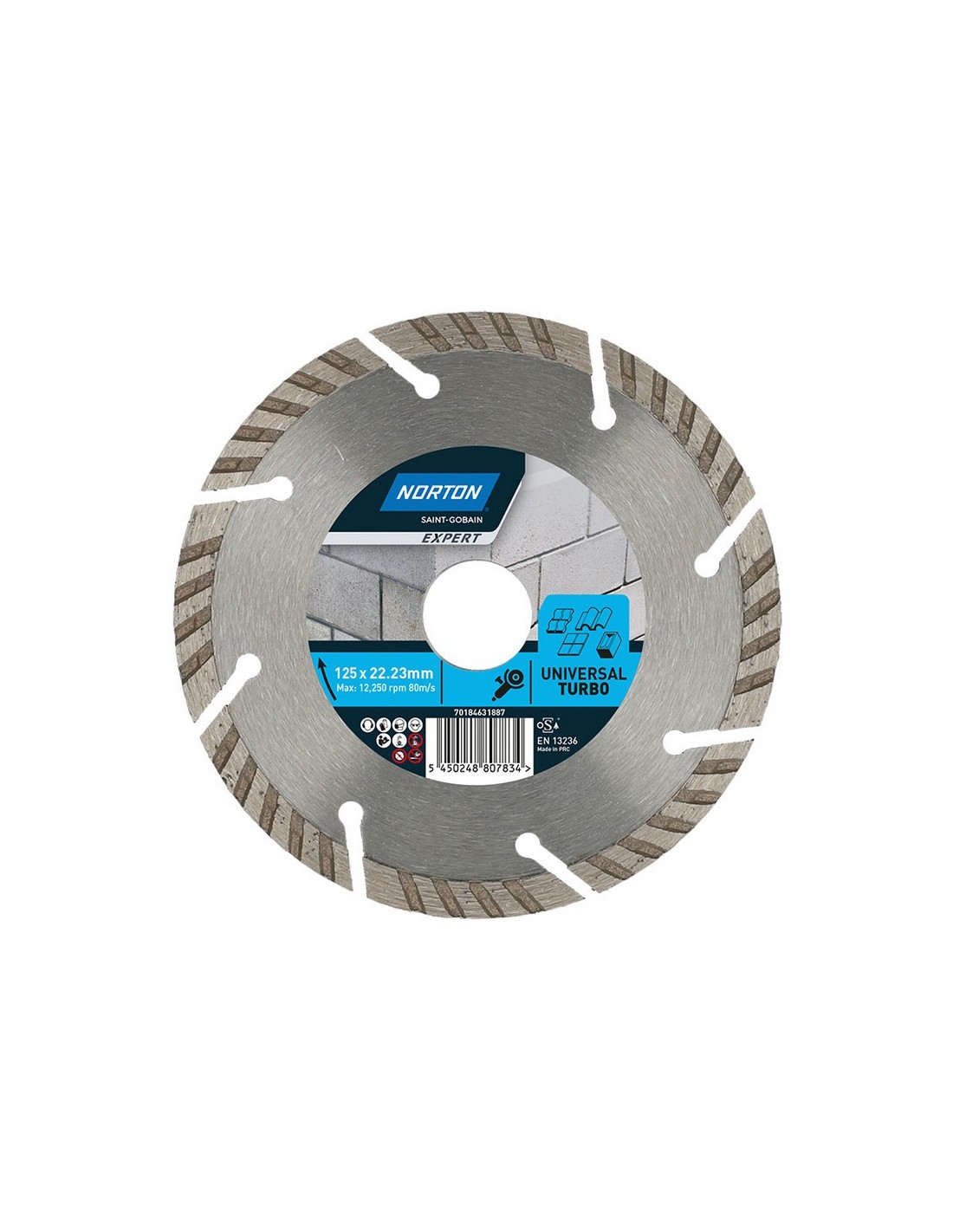 Disco diamante NORTON Expert Soldadura sinterizada. Perfil turbo segmentado. Segmento 8 mm. ø 125x22,23 mm.