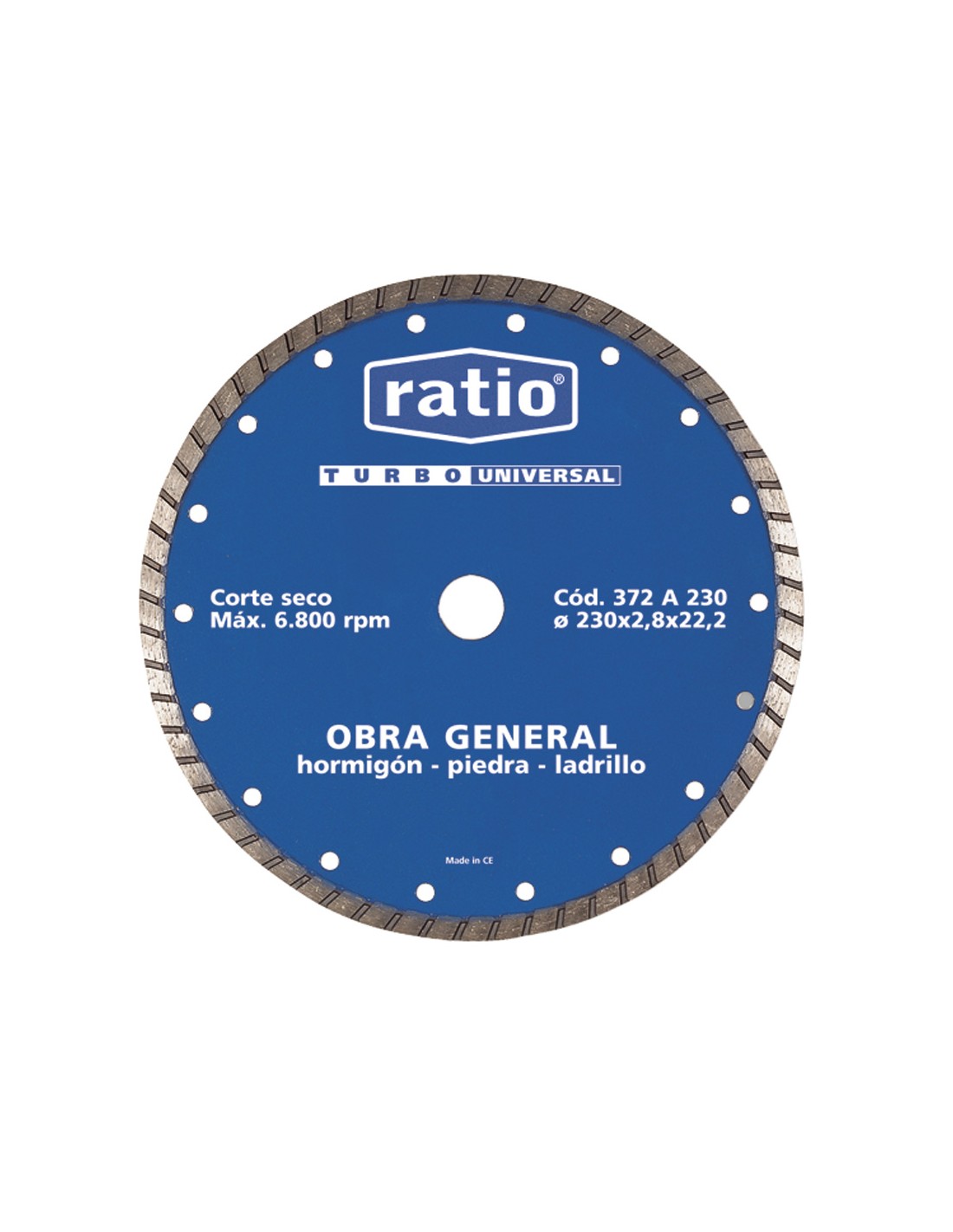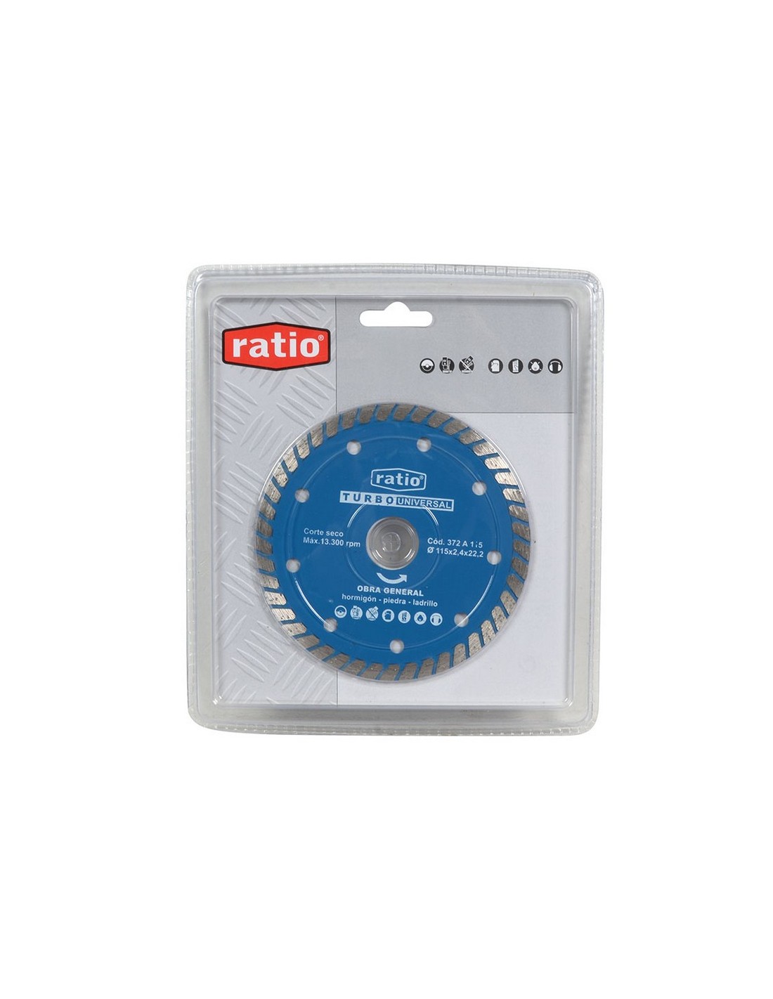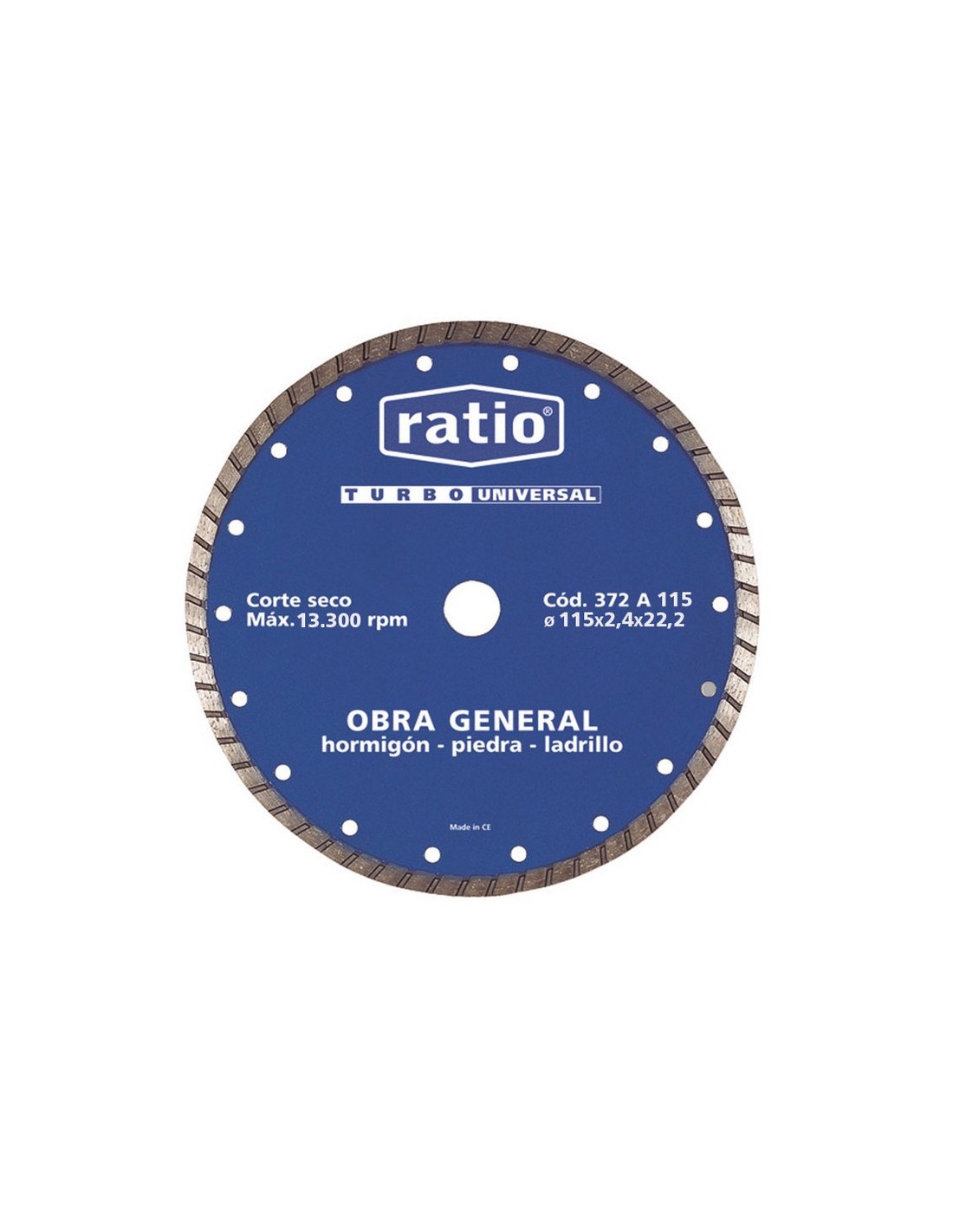Disco diamante Turbo universal RATIO 372A Turbo. Obra general, hormigón, piedra, ladrillo. ø 115x2,4x22,2 mm.