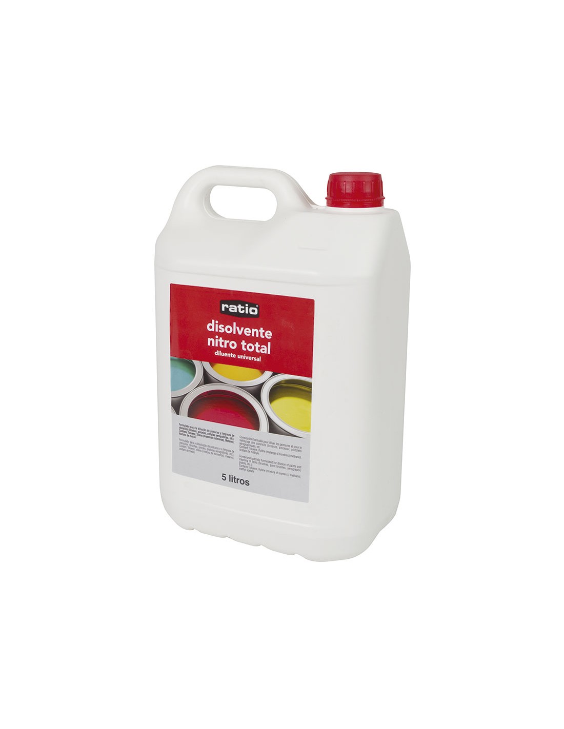 Disolvente universal RATIO Nitro Total. Dilución de pinturas y limpieza de utensilios (brochas, pinceles, pistolas aerográficas, etc). 5 litros.