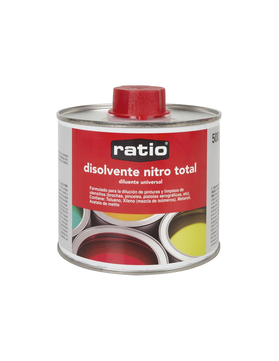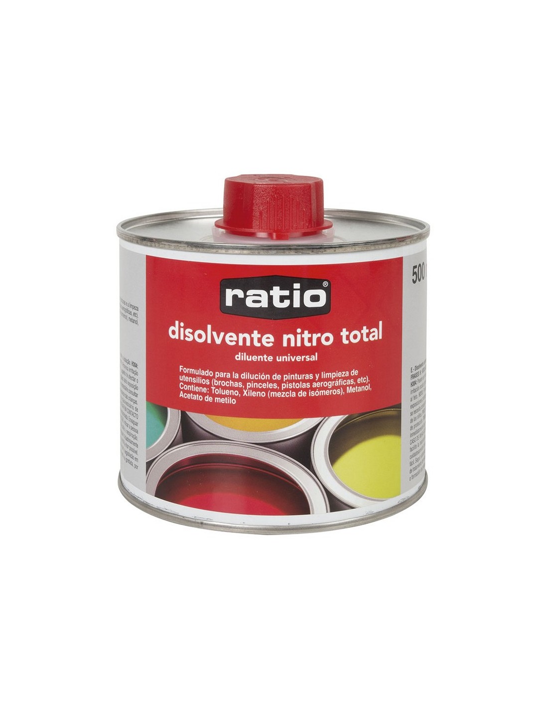 Entrega mañana 5,45 € Disolventes DISOLVENTE UNIVERS.NITRO TOTAL RATIO 1 L ratio 559B2 4,73 € Disolvente universal RATIO Nitro Total. Dilución de pinturas y limpieza de utensilios (brochas, pinceles, pistolas aerográficas, etc). 1 litro. Añadir al carrito