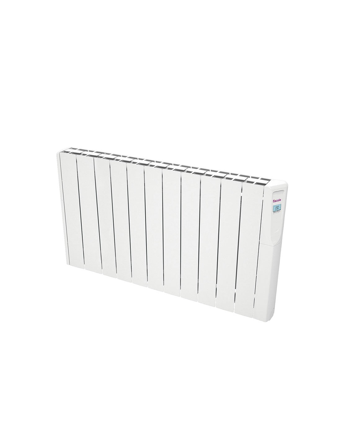 Emisor fluido portador de calor FACULA serie Z Advanced Cuerpo de aluminio fundido a presion. Extrasilencioso. Control digital programable de facil manejo. Sistema inteligente ITCS para adaptarse a la temperatura necesaria y reducir el consumo. Programas prefijados + personalizables. Indicador de consumo. Fijacion mural o suelo (Conjunto de bases opcional). 1.800 W.