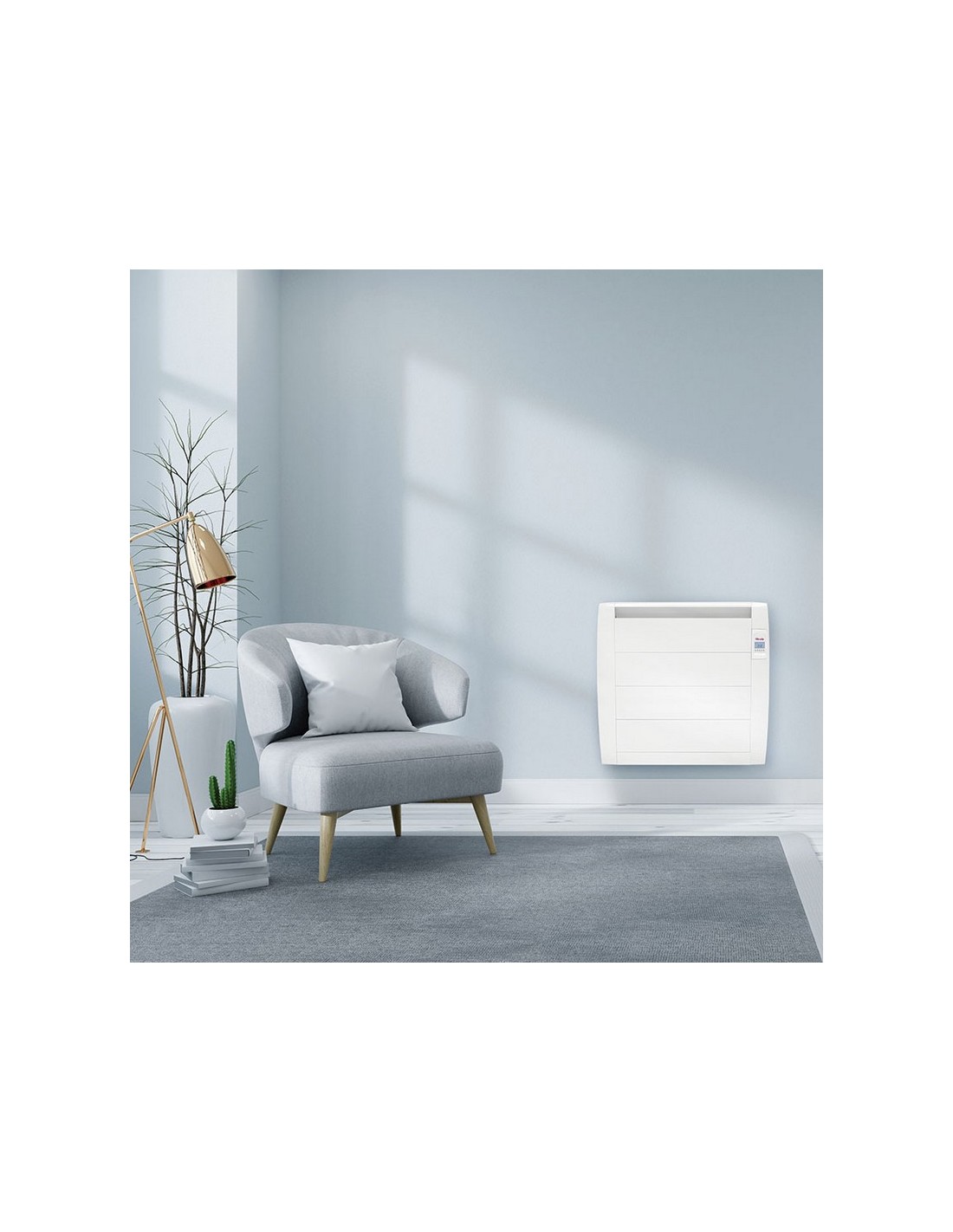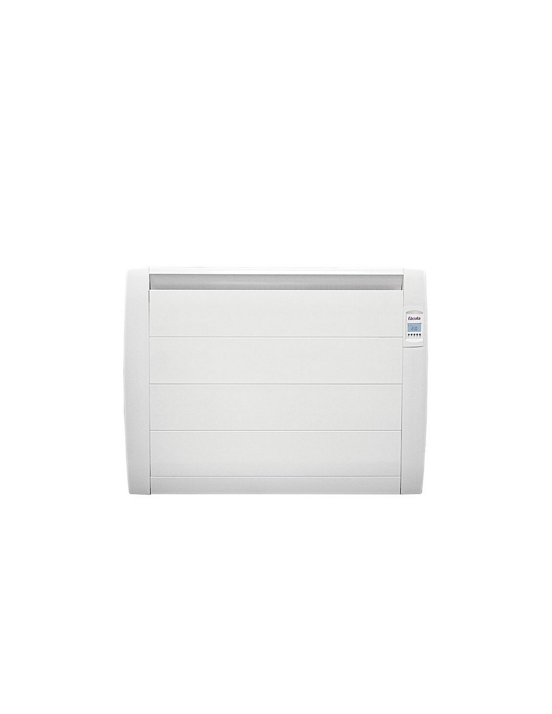 Emisor térmico seco FÁCULA Serie L Fabricado en aluminio con diseño ultrafino. Programa-ble 7 días x 24 horas. Sensor de temperatura NTC con precisión de 0,1ºC. Extra-silencioso. Control inteligente de activación anticipada. Función de ventanas abiertas. Patas incluidas. Fabricado en España. 1.500 W. 78x6xh.58 cm.