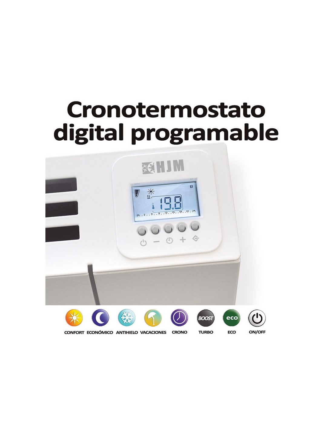 Emisor térmico seco HJM Serie AVA Bajo consumo, ahorro de energia y medidor de consumo. Detector ventanas abiertas. Termostato extraíble.