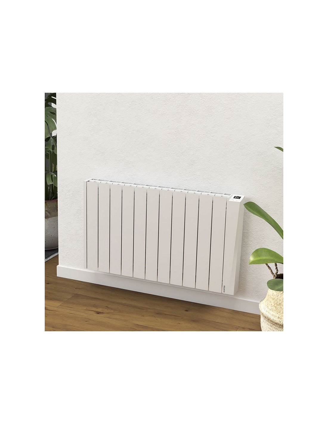 Emisor térmico con fluido ROINTE Kosmos Cuerpo 100% aluminio reciclado. Pantalla TFT 1,77". Módulo Wi-Fi direct incluído. Control voz Alexa y Google assistant. 4 programas pre-instalados + 1 libre programación. Funciones Anti-hielo, Eco, Confort y Ventanas abiertas. 1.750 W. 123x9,5xh.57,5 cm.