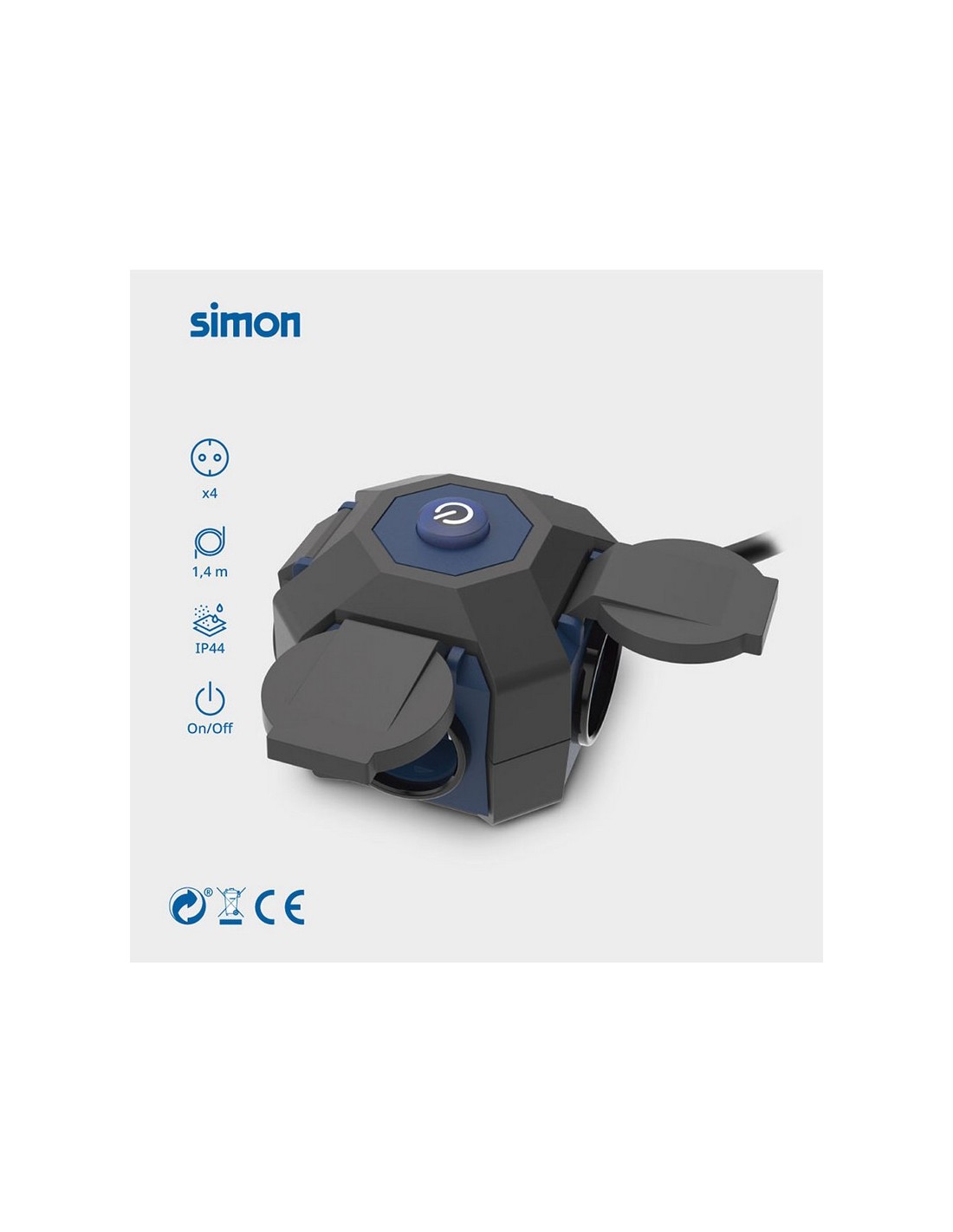 Prolongador Simon Expert IP44. 4 tomas. 1,4 m.