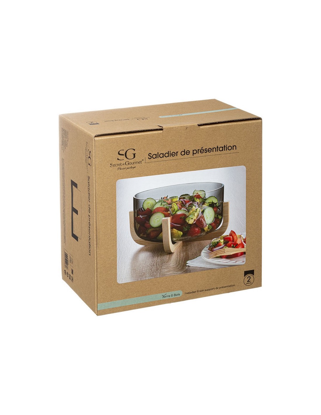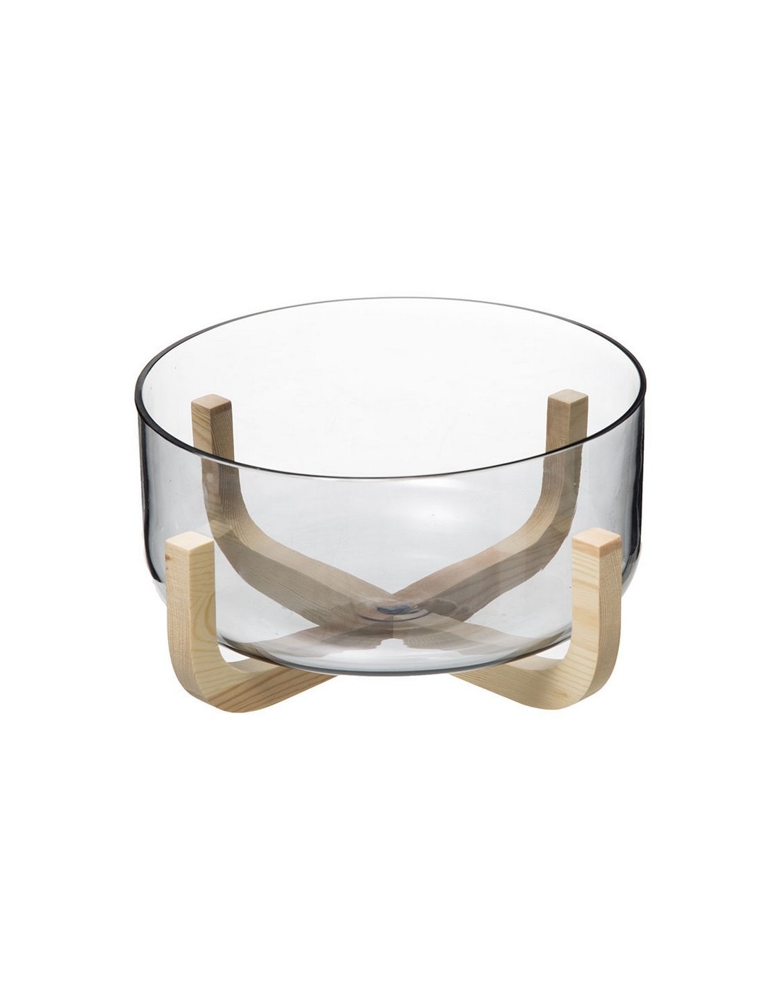 Ensaladera cristal con base bambú (MEMO) ø 24,5xh.14 cm.
