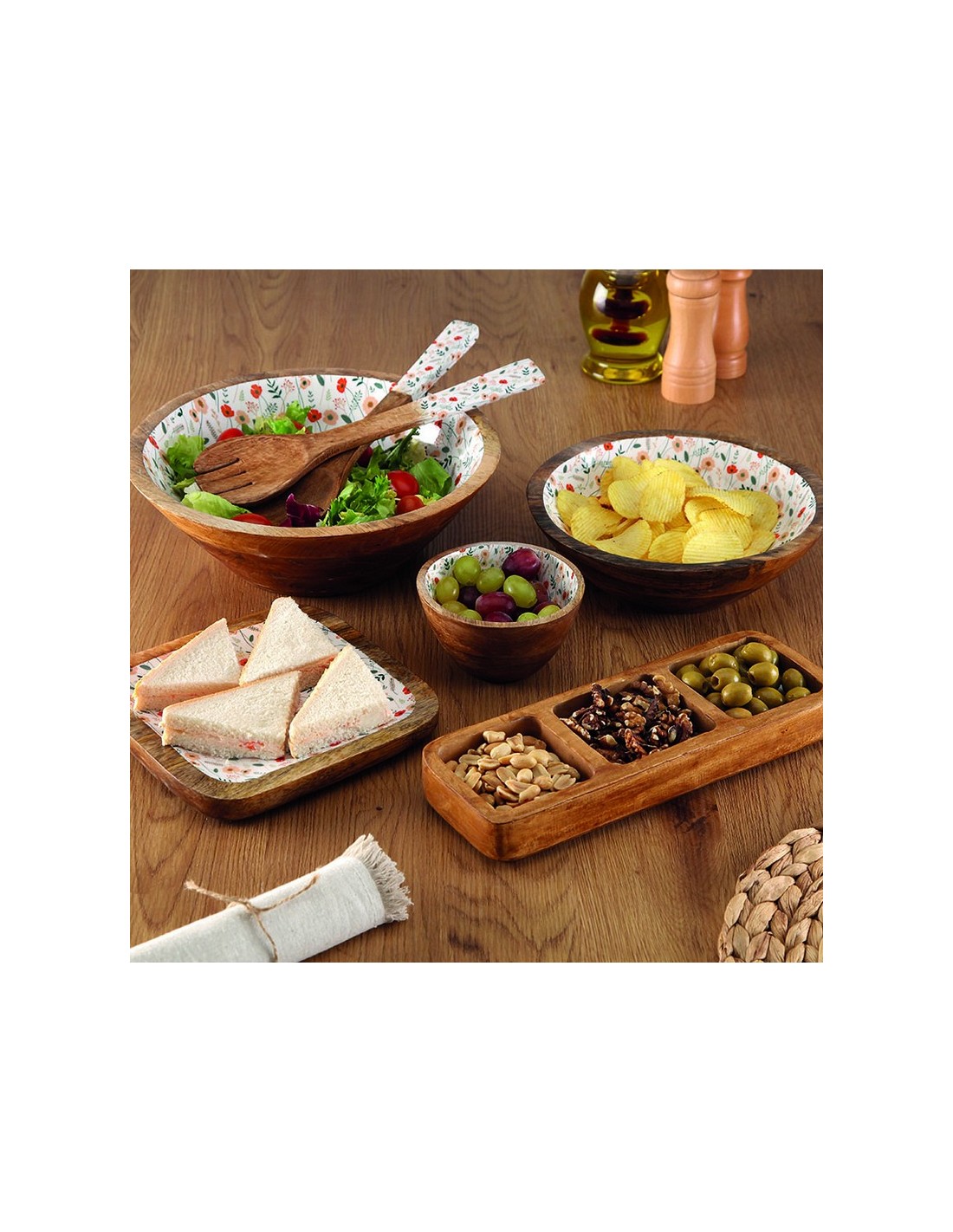 Compelmentos de mesa serie Versi Set de utensilios para servir en madera de mango y esmalte modelo VERDI. Ensaladera 24 cm.