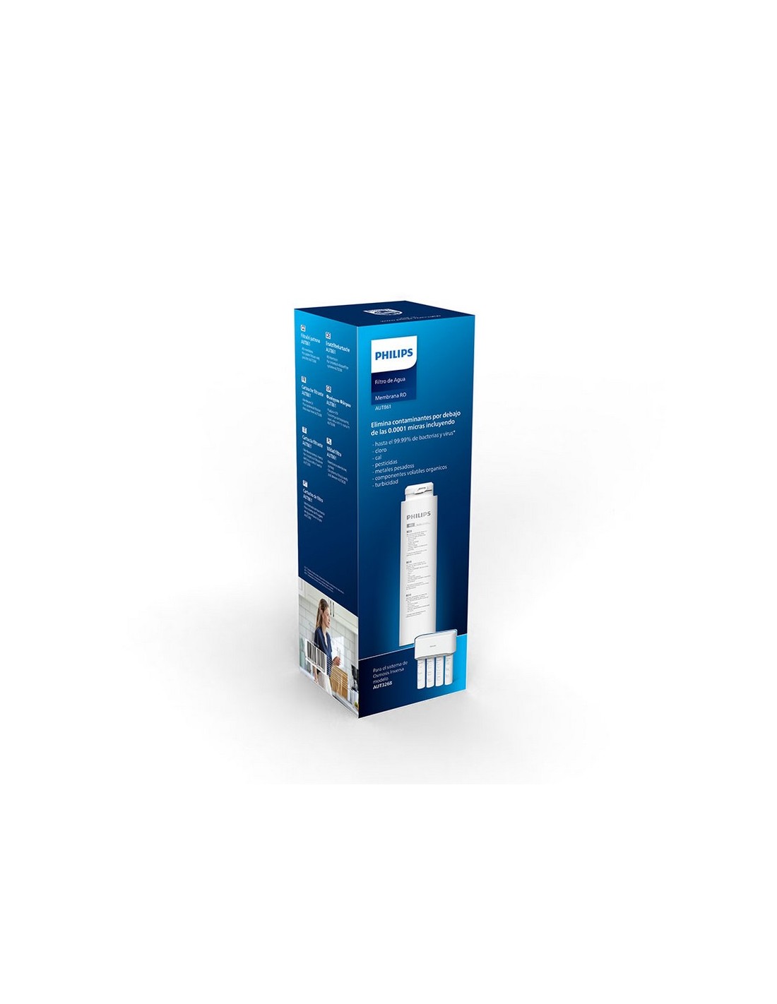 Ósmosis inversa con tanque PHILIPS AUT 3268/10 Circuito integrado para mayor seguridad e higiene, con tanque de 11 litros y flujo de agua de 2 l/min. Equilibra el pH del agua fitlrada y mejora el sabor del agua. Compacto. Sistema "QuickTwist" para cambio de filtros: higiénico y fácil. Recambio membrana RO