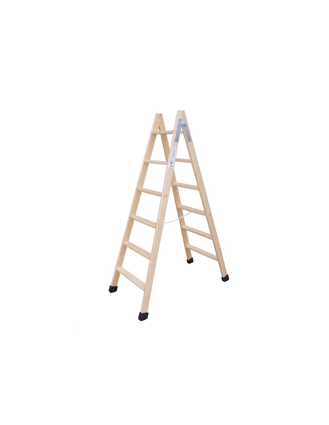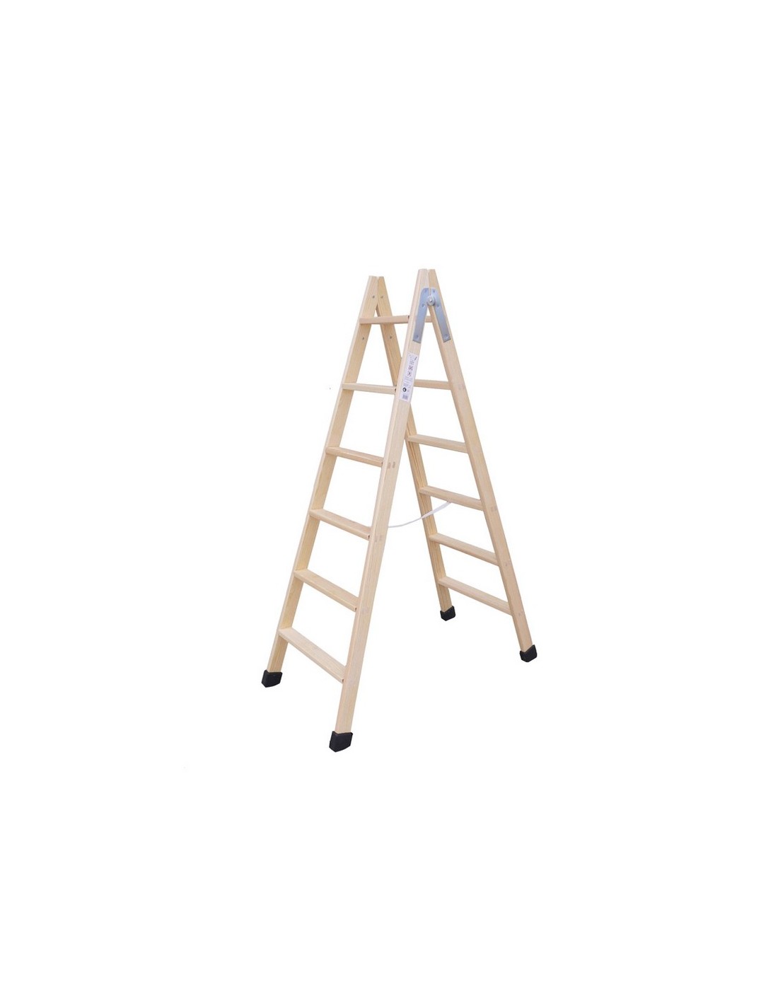Escalera madera Especial pintores y electricistas. Madera doble. Peldaños planos de 6 cm. de profundidad. Tacos antideslizantes. 7 peldaños.