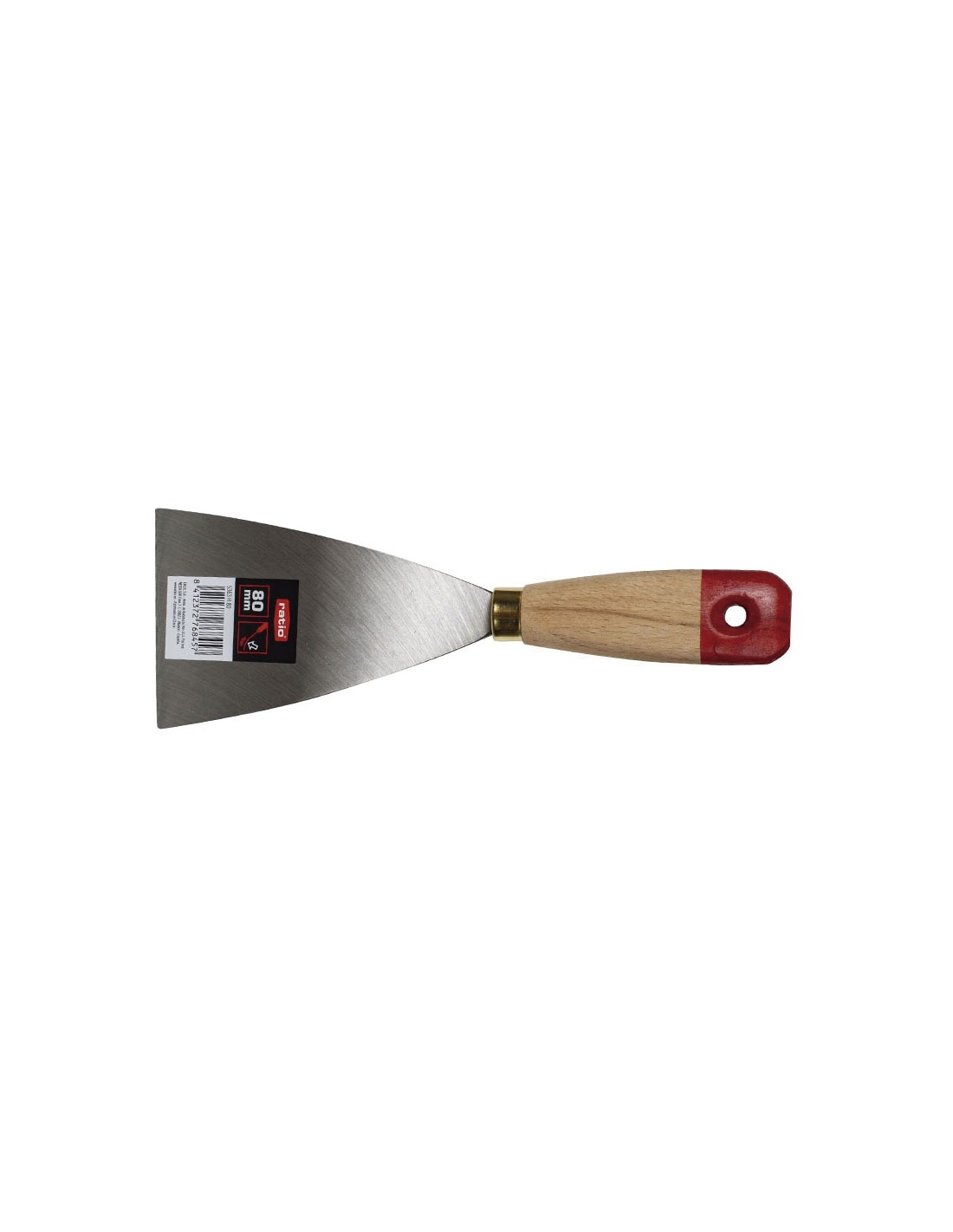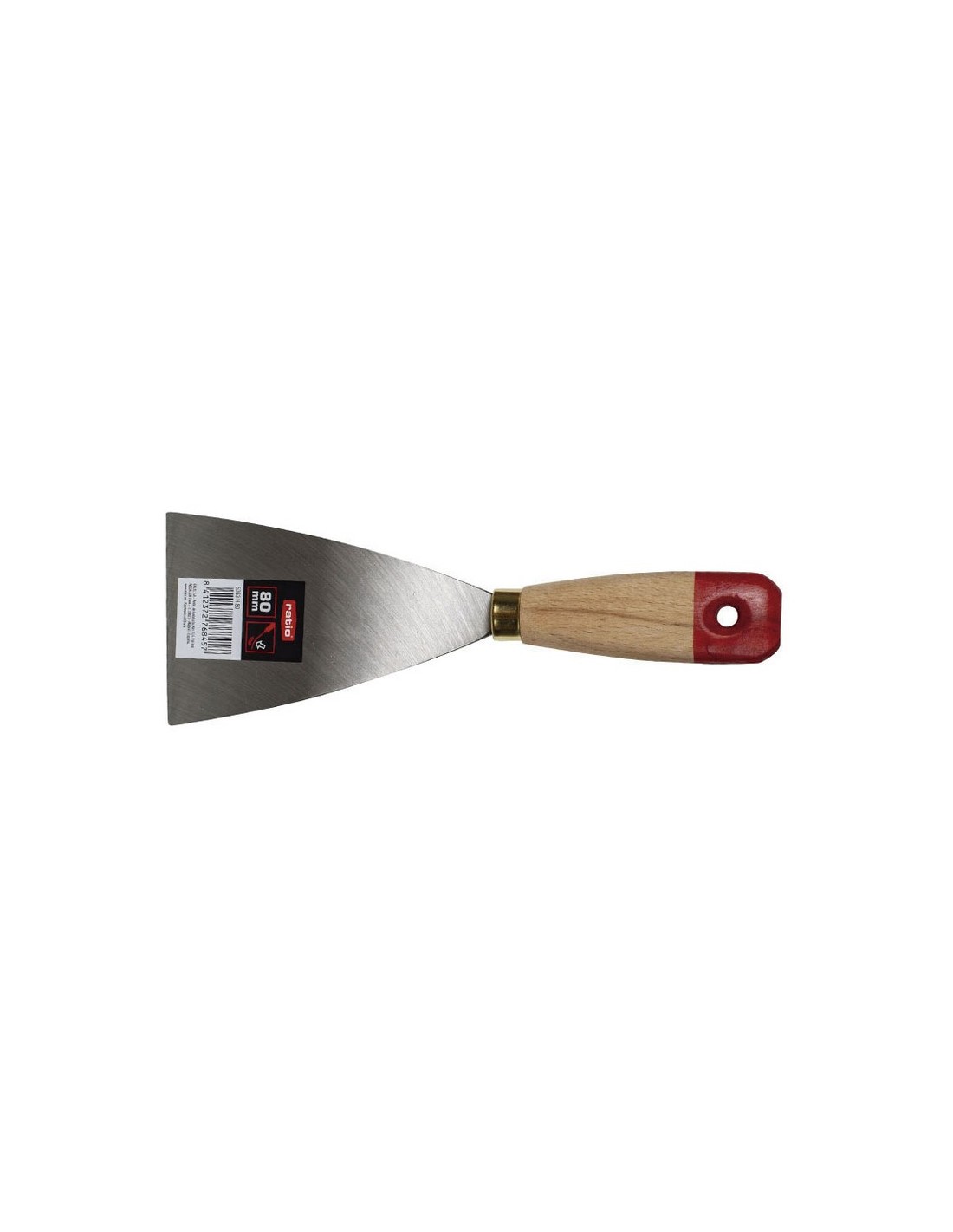 Espátula pintor RATIO acero flexible Hoja de acero de alta calidad, pulida y flexible. Mango madera de haya largo 103 mm. Espesor hoja: 1,4 ~ 0,45 mm. 80 mm.