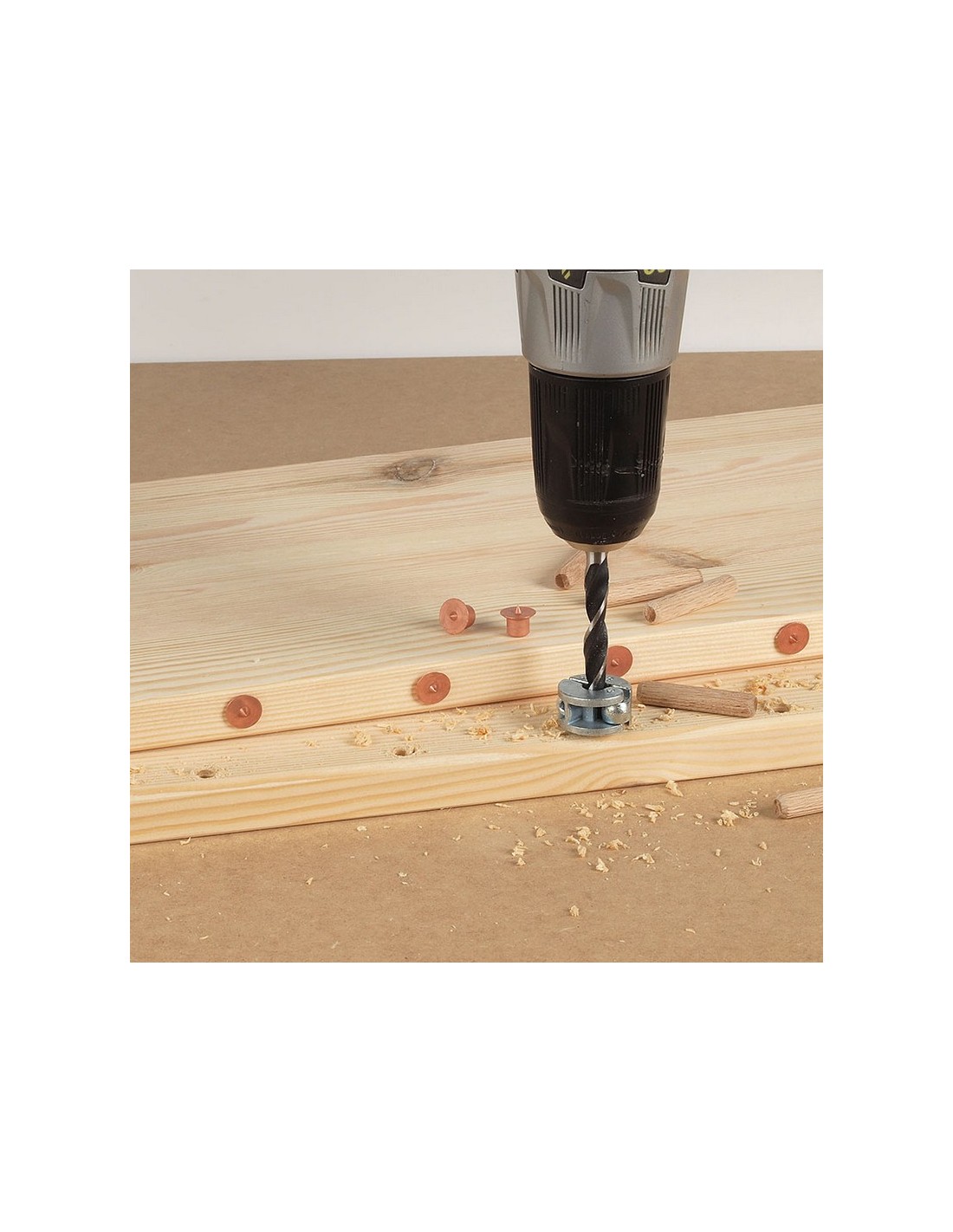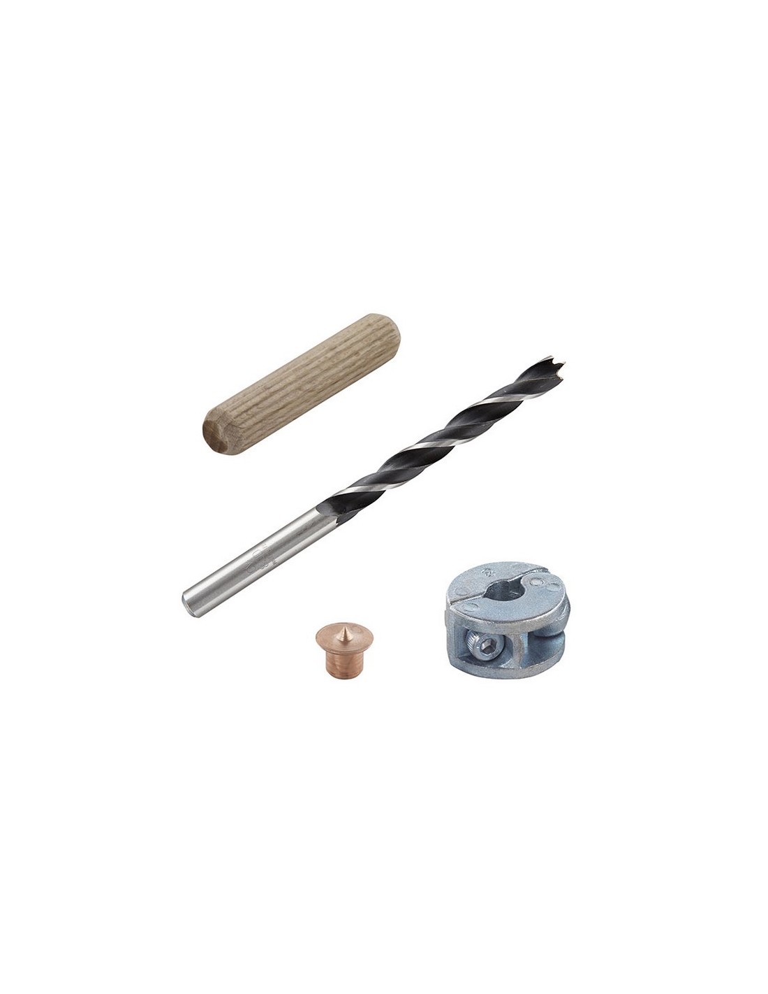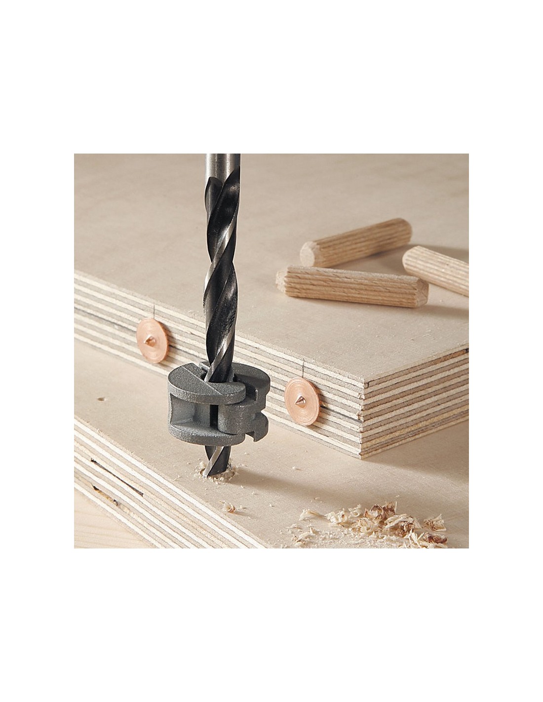 Juego de clavijas WOLFCRAFT Para taladro y atornillador de batería. Juego de marcador, broca para madera, tope de profundidad y espigas corrugadas de madera para realizar ensamblajes de madera. 4 marcadores para marcación exacta de agujeros para espigas opuestos. Broca para madera con punta cortante rectificada de precisión y punta de centraje para lograr un buen guiado de las perforaciones. ø 8 mm. 28 piezas.