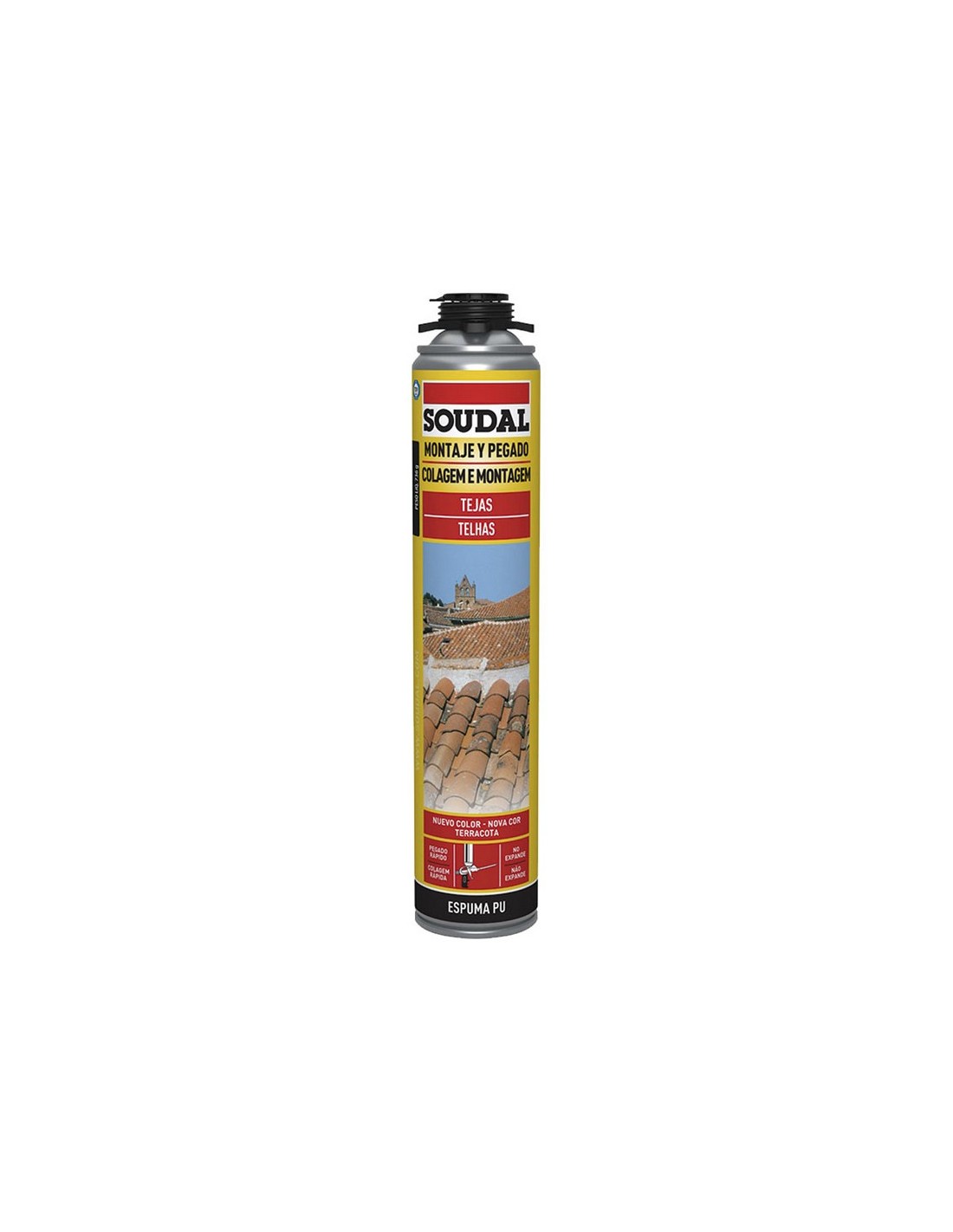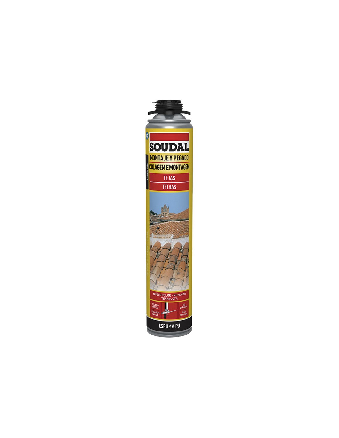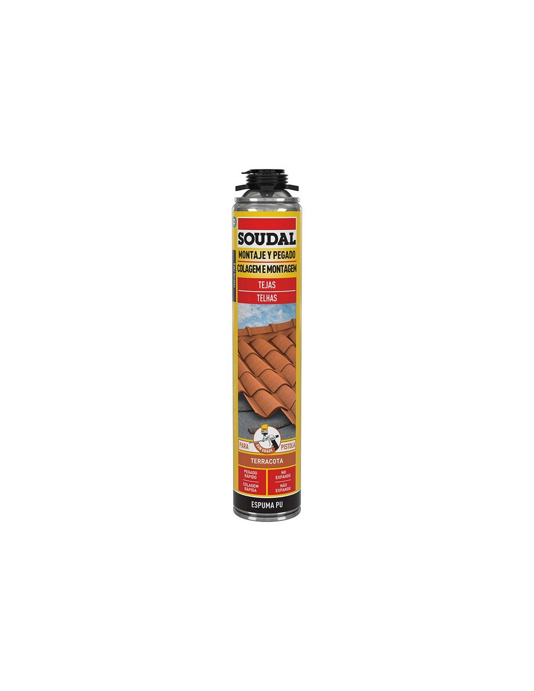 Espuma poliuretano tejas SOUDAL Espuma para fijar tejas. Lista para usar. Fijación ultrarrápida de tejas, incluso con humedad. Perfecto pegado de tejas a todos los soportes como hormigón, ladrillos, metal. madera o chapas de aislamiento. Pistola. Roja. 750 ml.