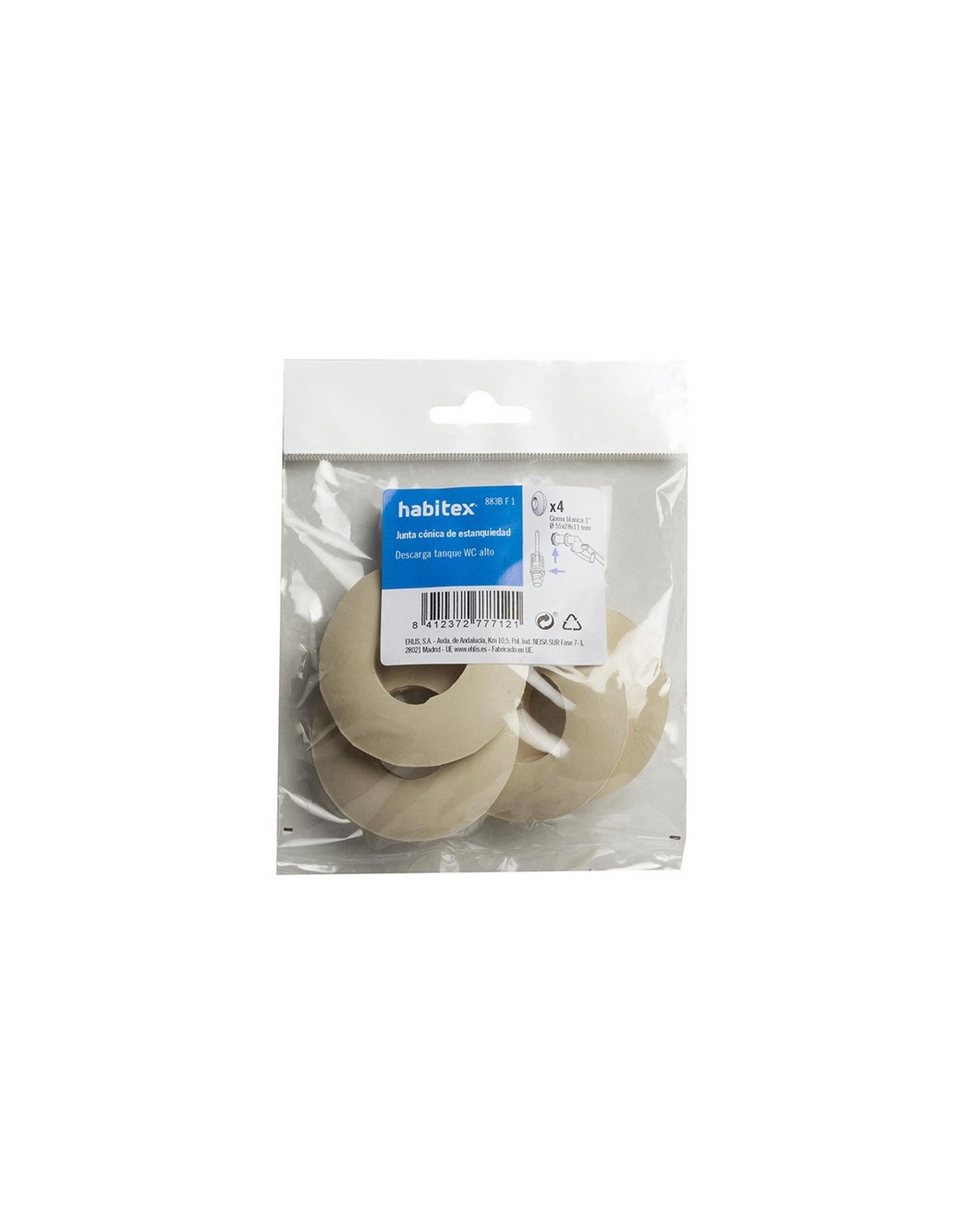Junta de estanqueidad HABITEX. Cónica. Goma blanca. Blíster 4 unidades. 1\" ø 55x28x11 mm.