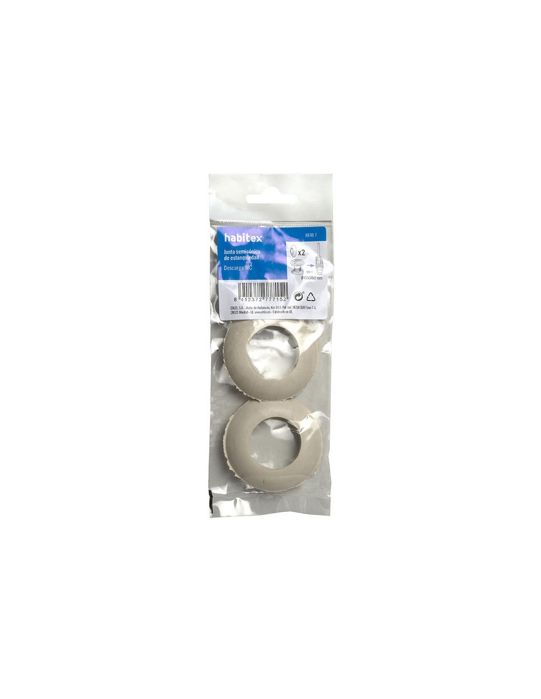 Junta de estanqueidad HABITEX. Semicónica. Goma blanca. Blíster 2 unidades. WC ø 62x34x9 mm.