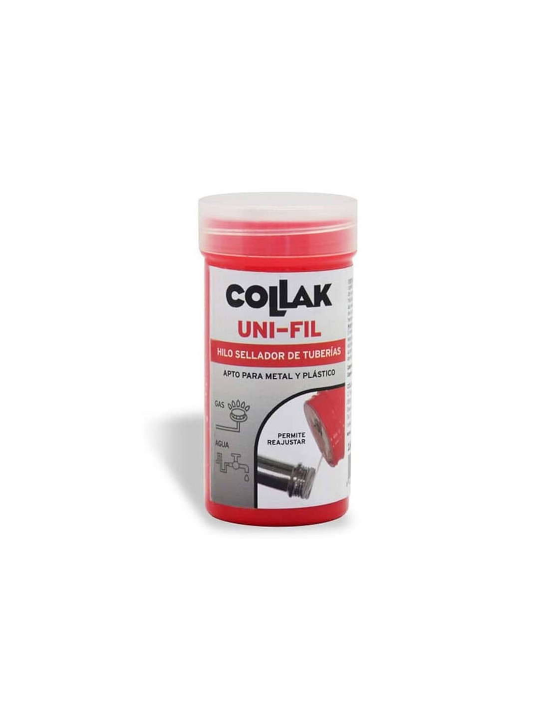Hilo sellador para accesorios roscados COLLAK UNI-FIL Adecuado para sellar juntas de plástico o metal roscado en instalaciones de agua o gas. Hilo multifilamento de poliamida revestido con pasta. 80 m.