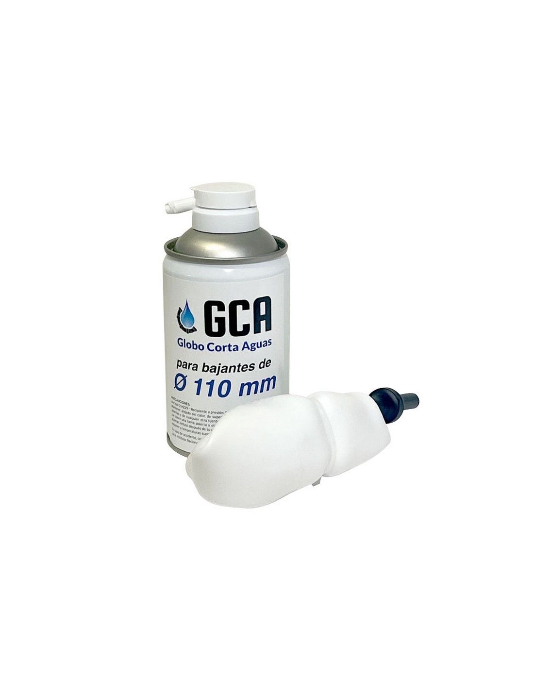 Globo corta aguas GCA Esfera compuesta de PP elástica y resistente a los medios. Diseño especial para diámetros estándares ø 90, 110, 125, 160, 200. El gas utilizado es CO2, no inflamable, no tóxico, no venenoso. Presiones de los aerosoles: 7 bares. Presentado en blíster rígido. ø 110 mm.