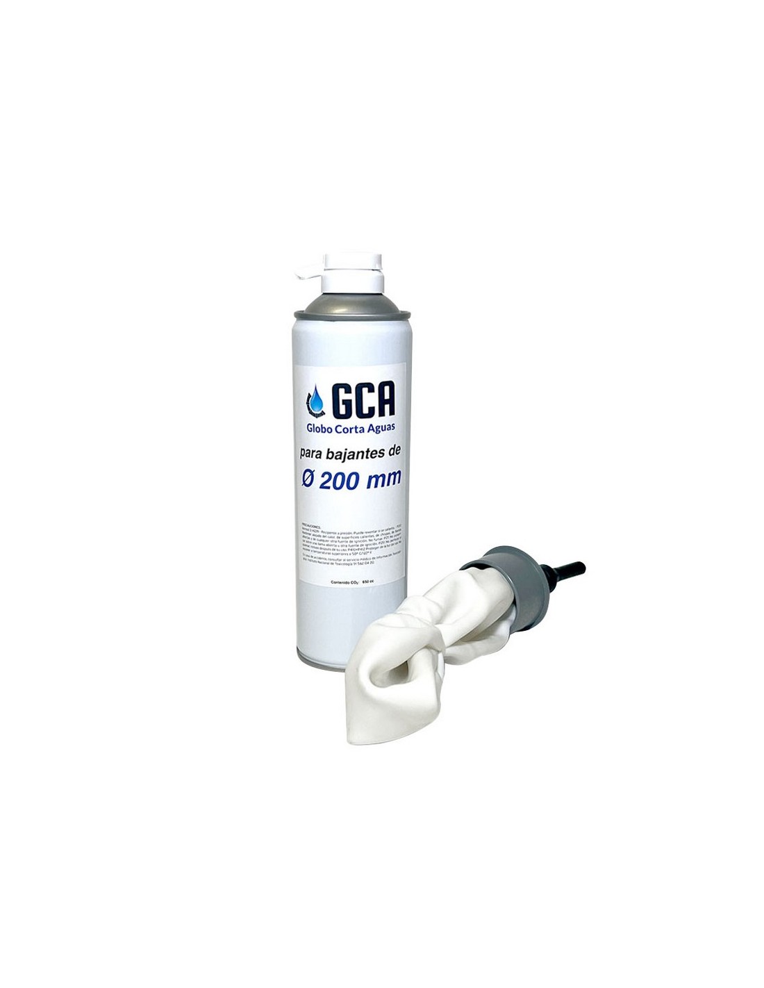 Globo corta aguas GCA Esfera compuesta de PP elástica y resistente a los medios. Diseño especial para diámetros estándares ø 90, 110, 125, 160, 200. El gas utilizado es CO2, no inflamable, no tóxico, no venenoso. Presiones de los aerosoles: 7 bares. Presentado en blíster rígido. ø 200 mm.