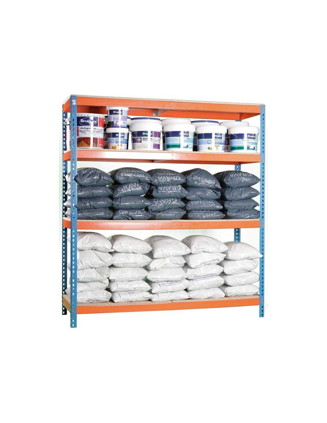 Estantería metálica HABITEX Mega. Acero laminado. Kit de montaje fácil sin tornillos. Pintura epoxi azul/naranja. 4 bandejas de madera. 400 kg por estante. 2 paquetes por referencia. Kit Mega 60 200x180x60 cm: Paquete 2: Perfiles para Kit MEGA 60