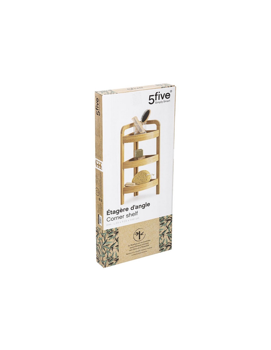 Estantería rinconera auxiliar bambú Bambú natural. 3 estantes. 23x23xh.61 cm.
