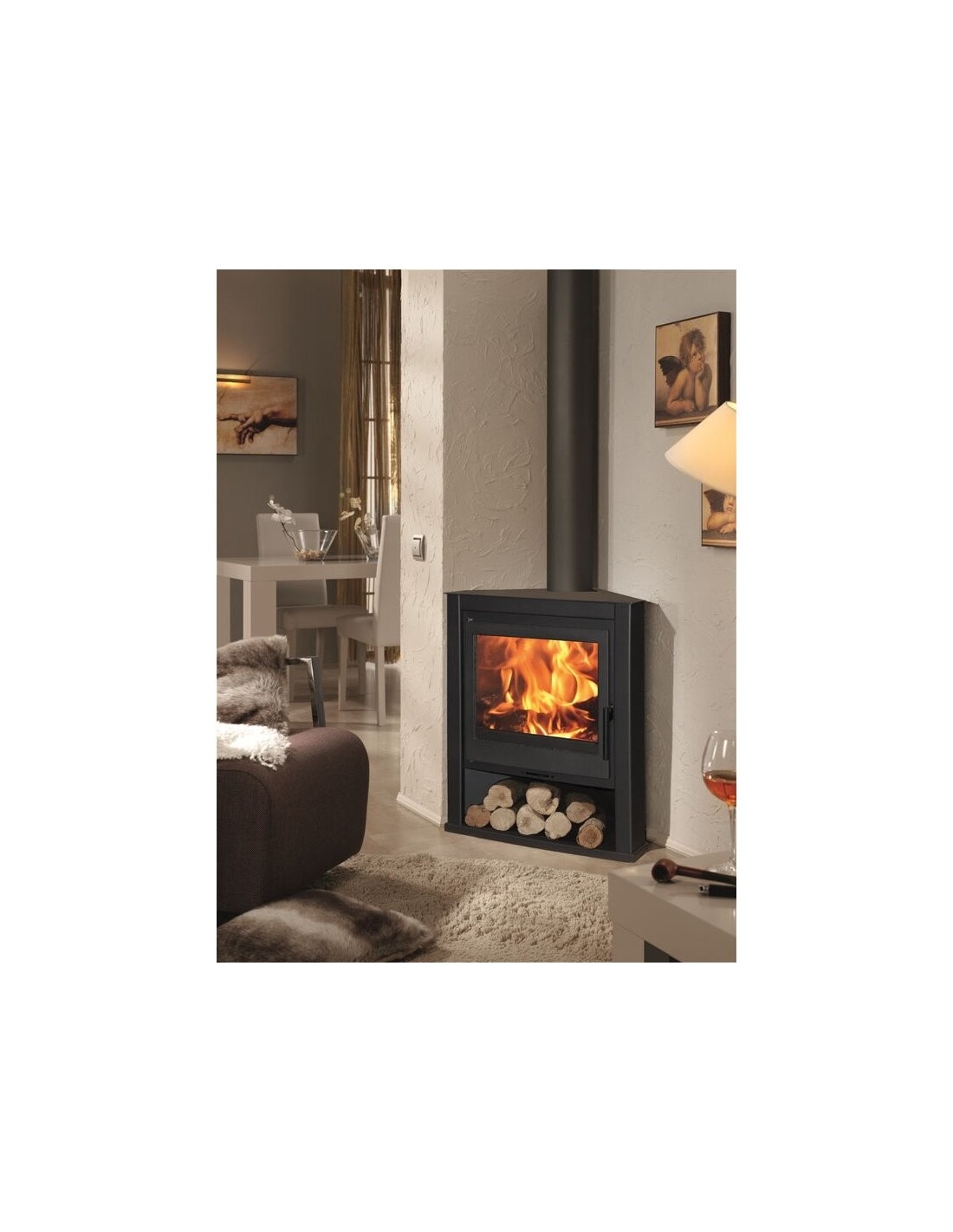 Estufa EcoDesign de rincón. Doble cuerpo de acero.