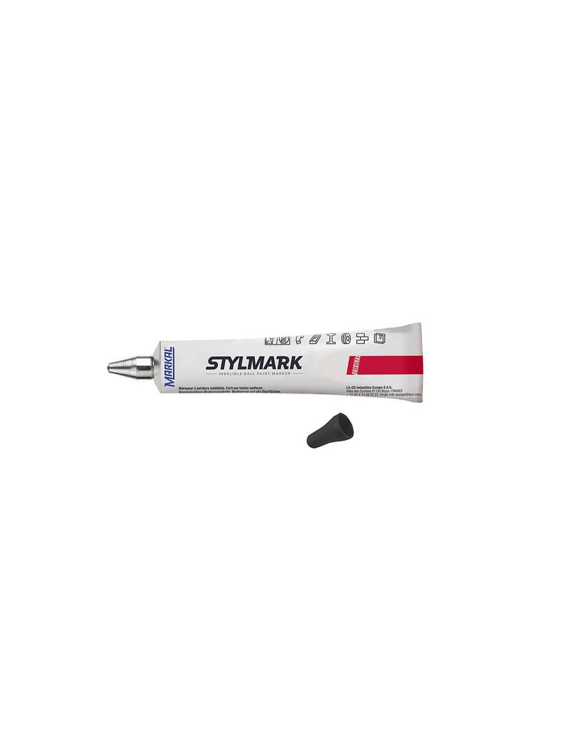 Marcador pintura tubo punta de bola Markal Punta de bola para múltiples superficies. 6 colores. Negro.