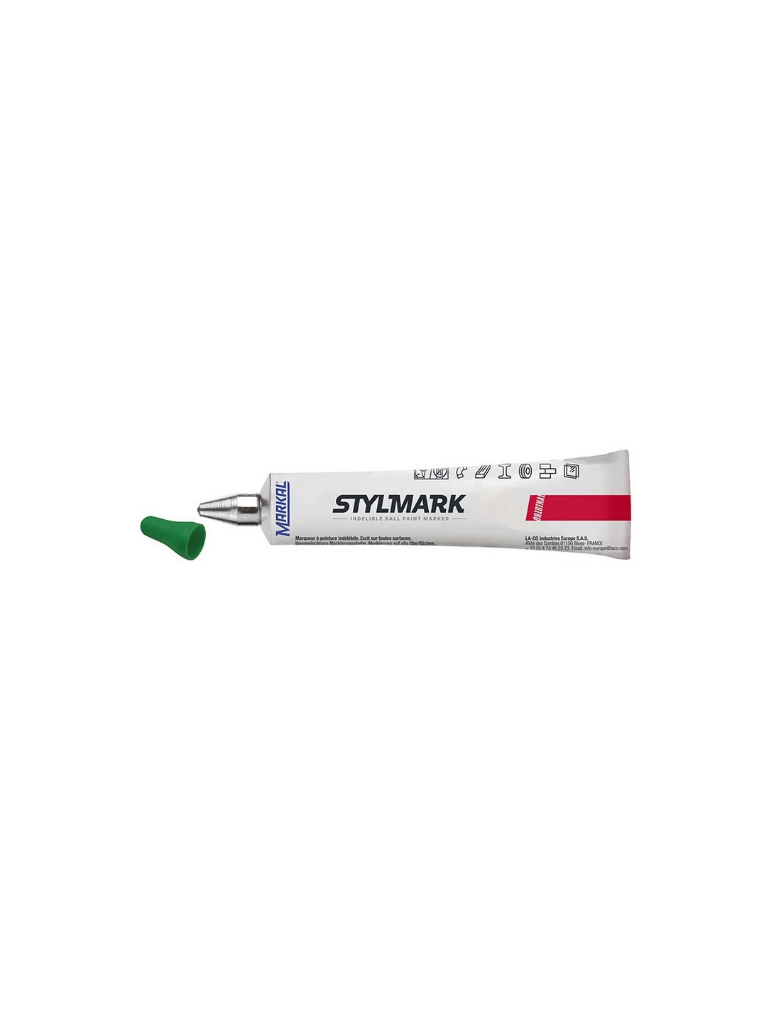 Marcador pintura tubo punta de bola Markal Punta de bola para múltiples superficies. 6 colores. Verde.