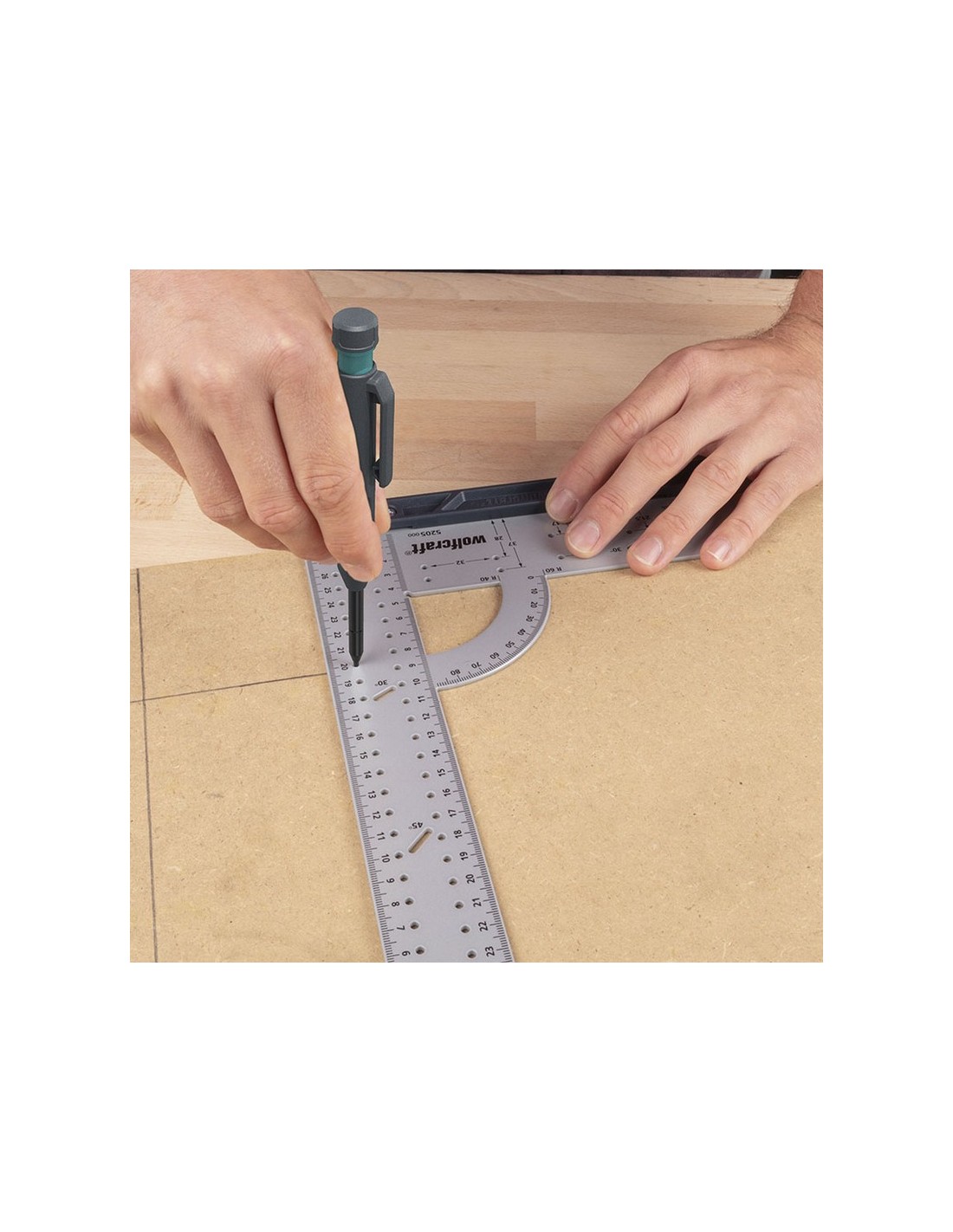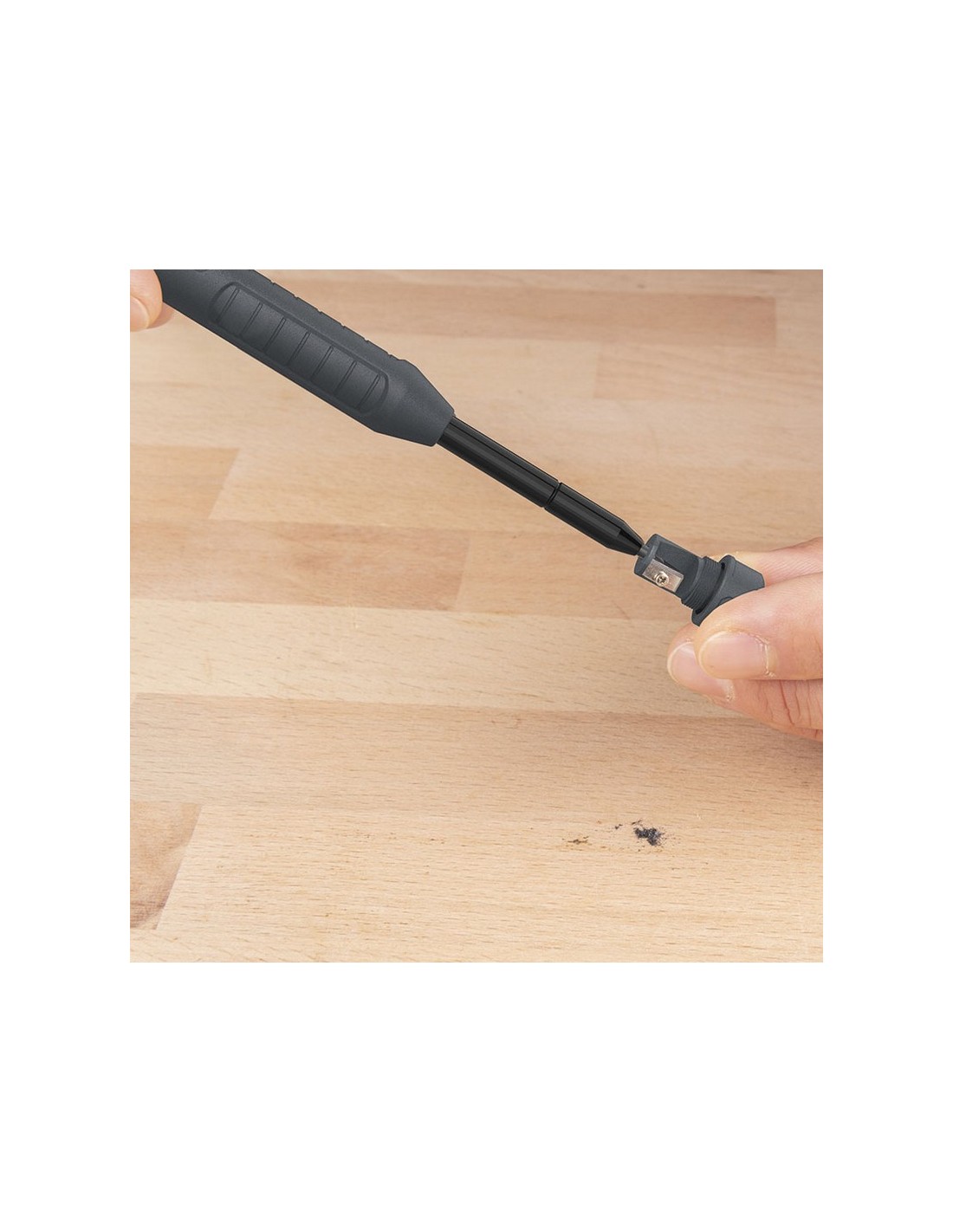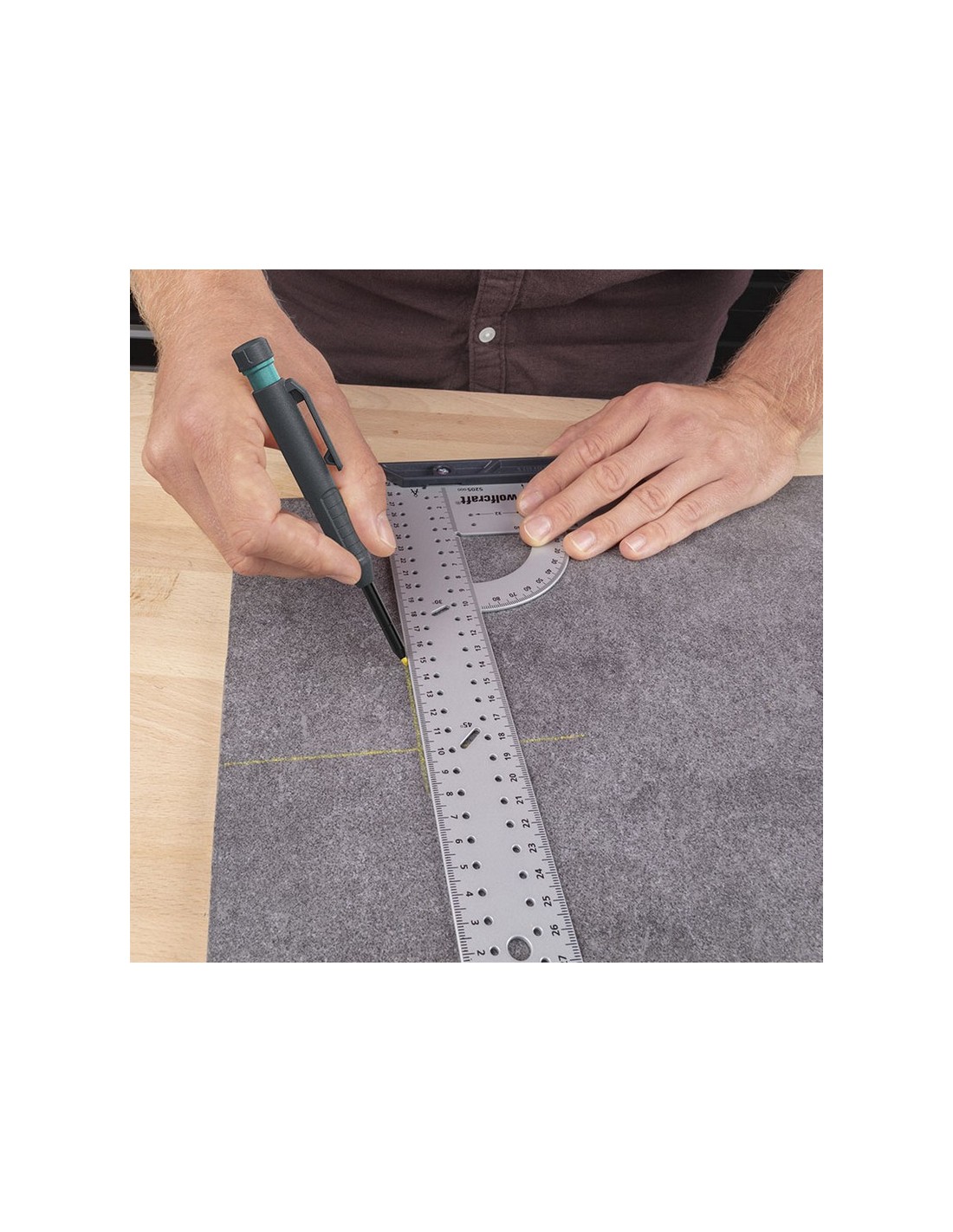Marcador agujeros profundos WOLFCRAFT 1 marcador de agujeros profundos. 1 mina gris universal. Afilador integrado en el pulsador para afilar. Marcador 154 mm.
