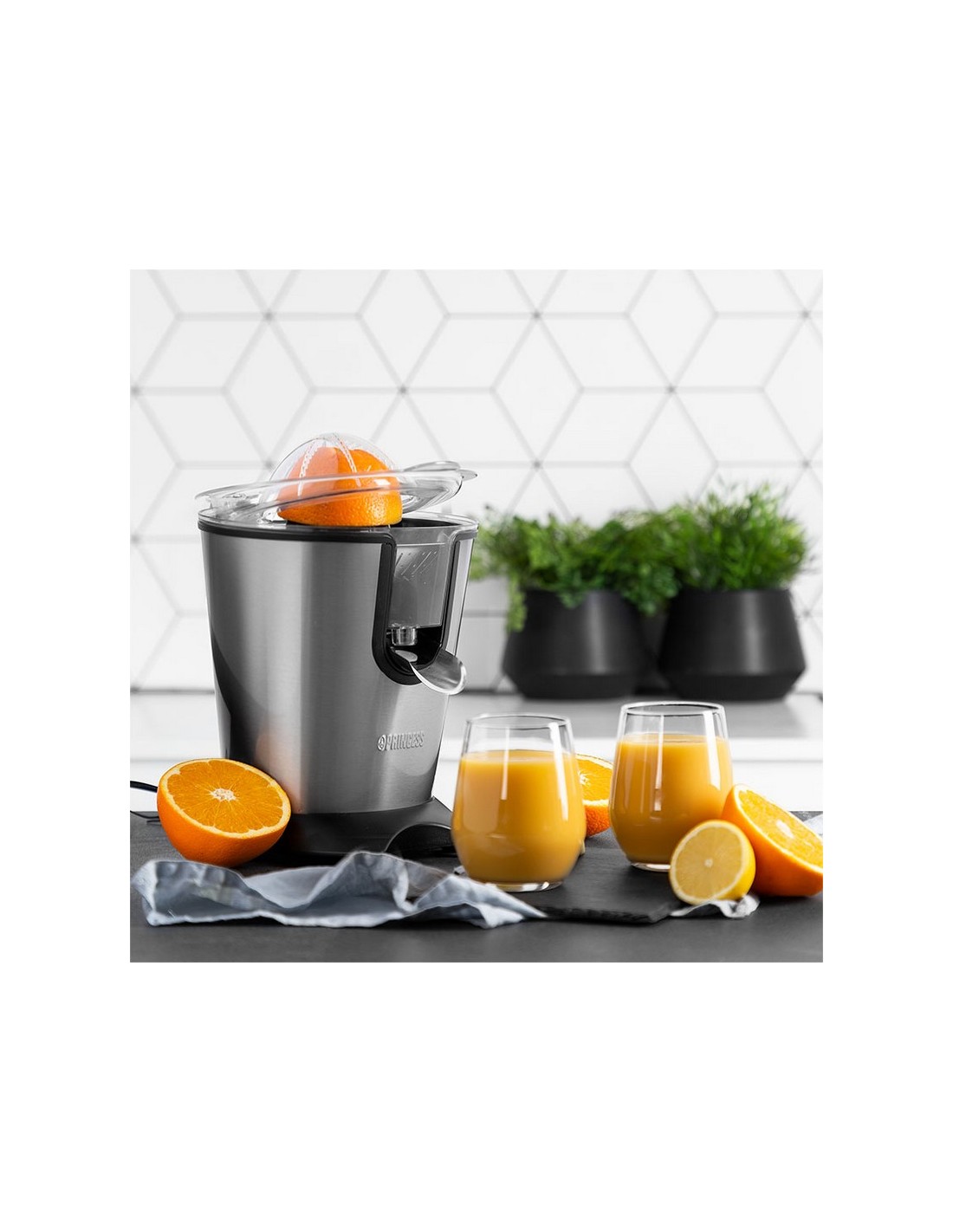 Exprimidor PRINCESS 201850 Doble sentido de giro. Filtro para pulpa de acero inox y sistema antigoteo. Base antideslizante. Piezas y accesorios aptas para lavavajillas. 160 W.