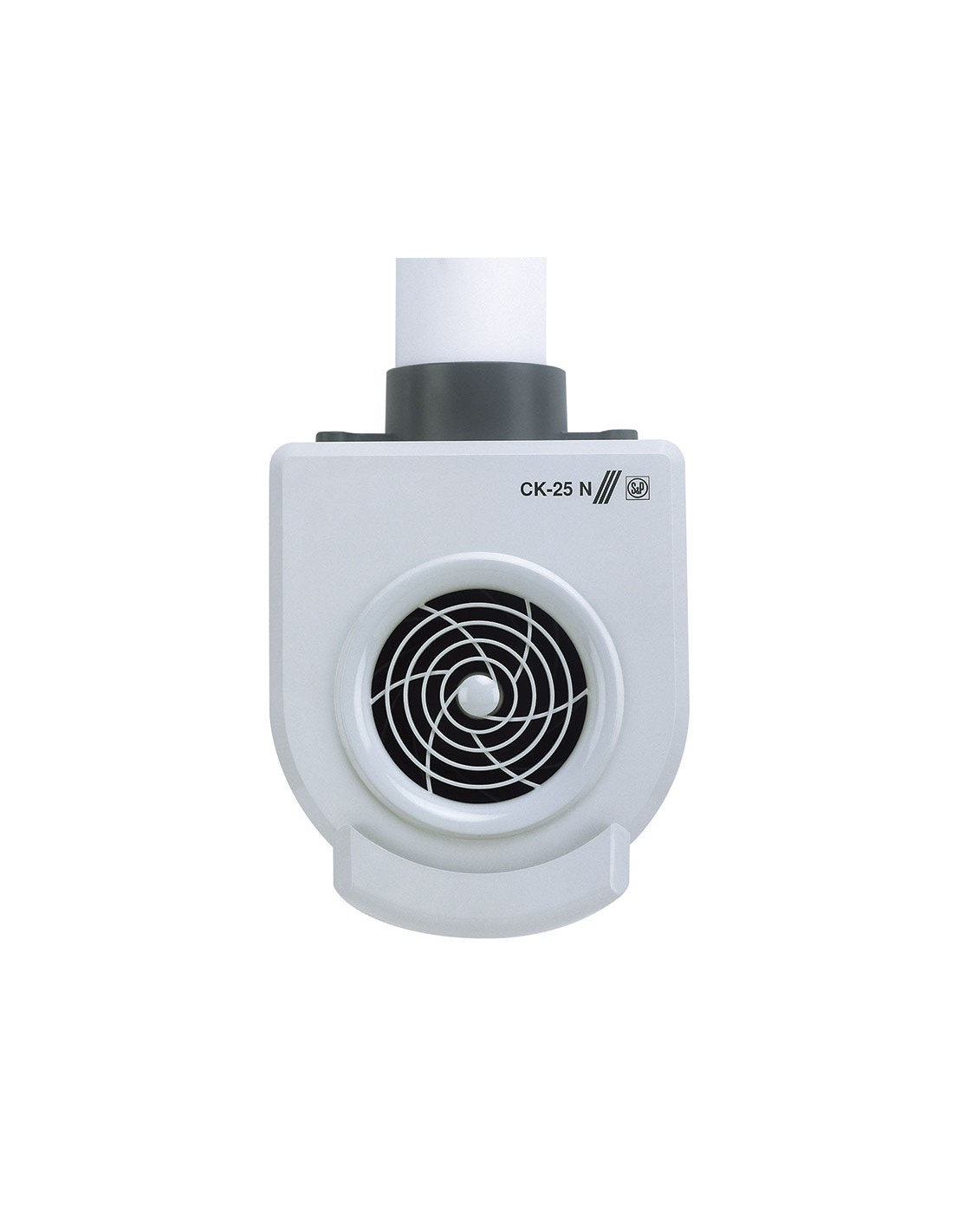 Extractor de cocina S&P modelo Gama CK. Extractores centrífugos. Plástico ignífugo V0. Filtro acero inoxidable. Bandeja recogegrasa. Caudal indicado a descarga libre, motor 230v-50Hz. Clase II. Desmontable y fáciles de lavar, incluso en lavavajillas. CK-25N. 25W. Caudal 250 m³/h.