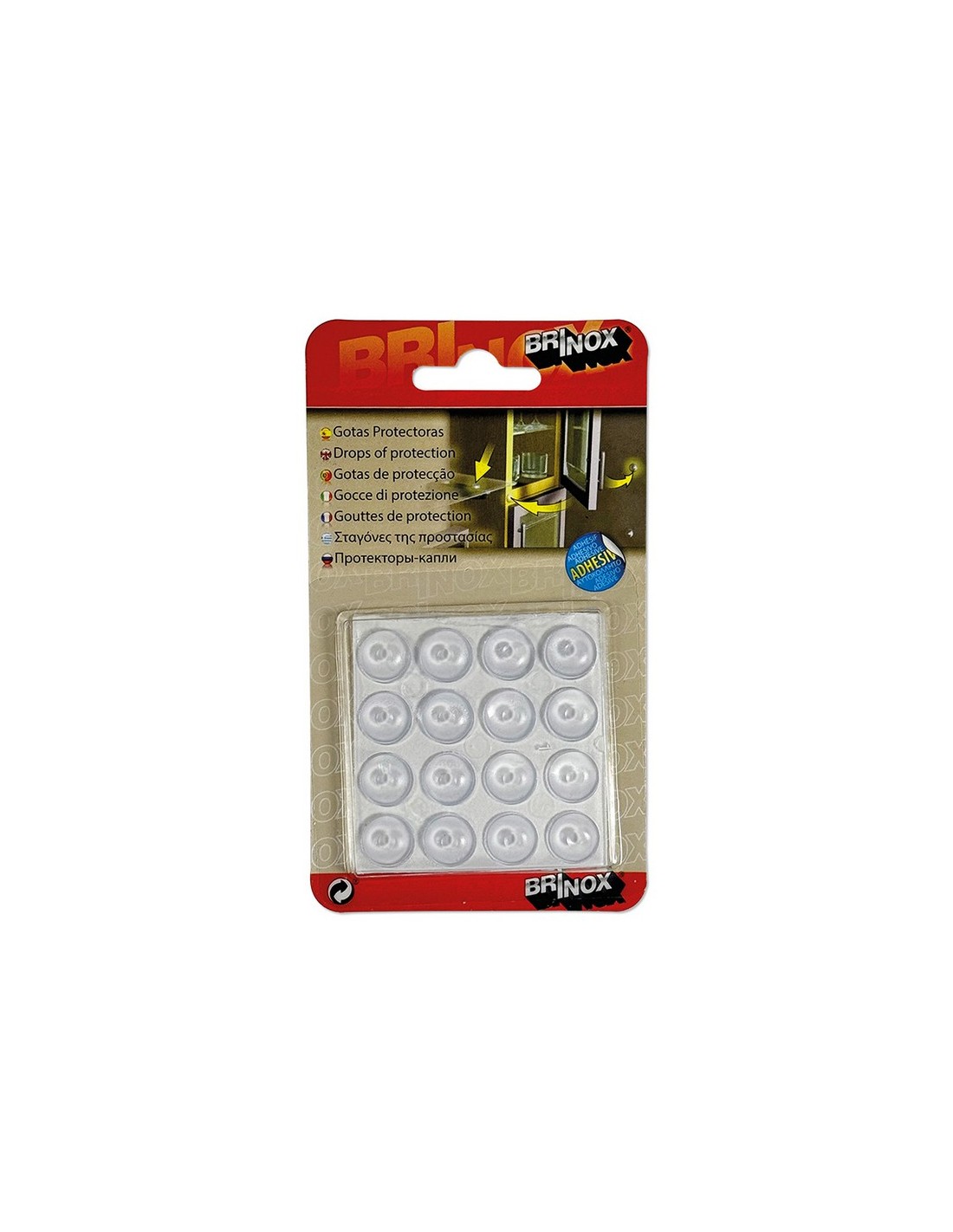 Tope de silicona BRINOX Transparente. Autoadhesivo. Gota. ø 12x2,5 mm. 16 unid.