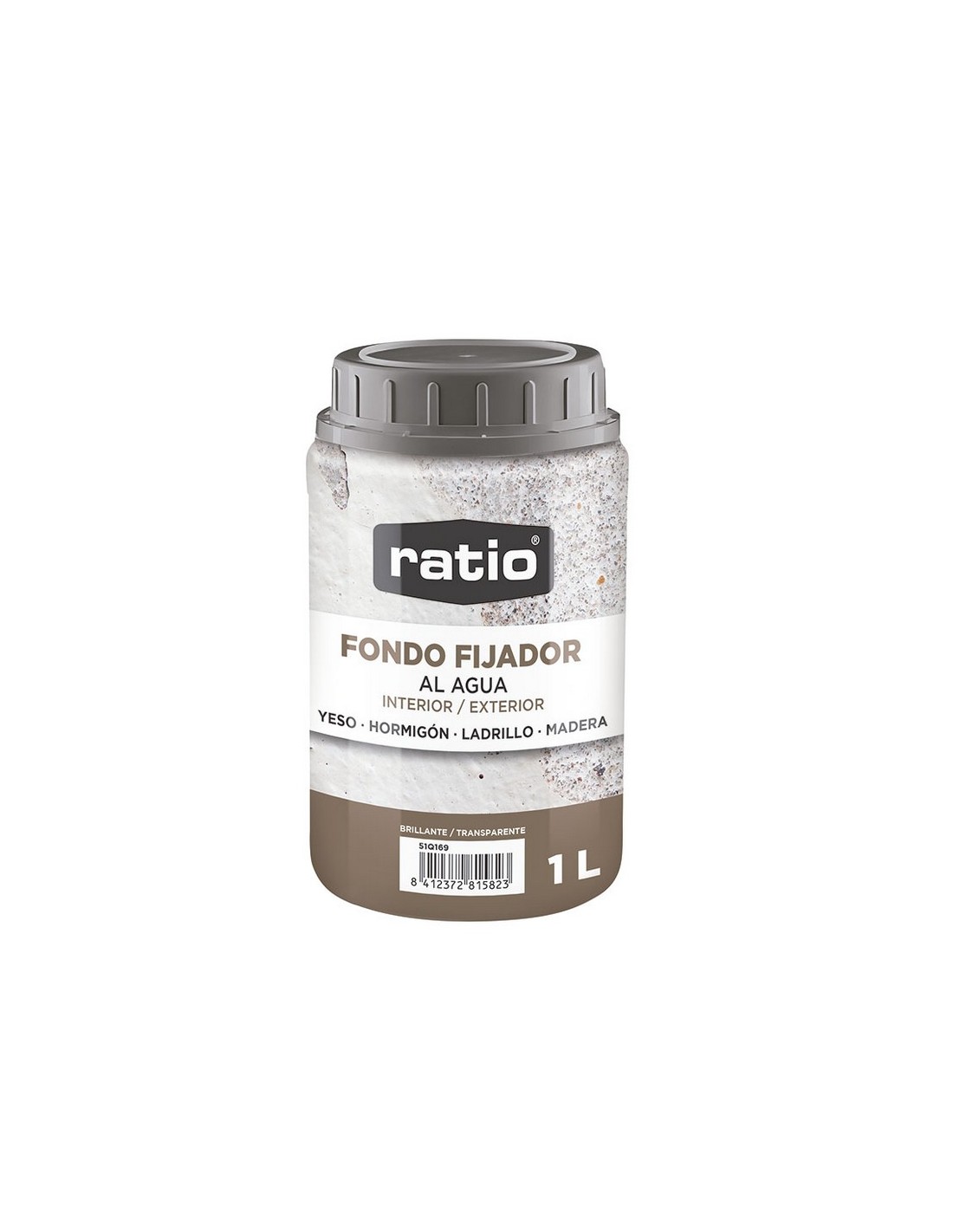 Fijador concentrado al agua RATIO Acrílico al agua, incoloro, que unifica y limita el grado de absorción y consolida los fondos débiles y pulverulentos. En interior y exterior como tratamiento de fondo sobre los materiales utilizados en construcción (yeso, hormigón, revoques, ladrillo). 1 litro.